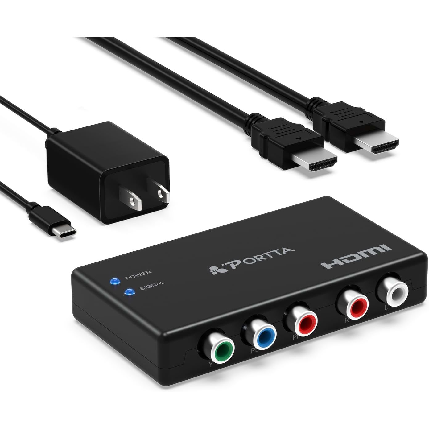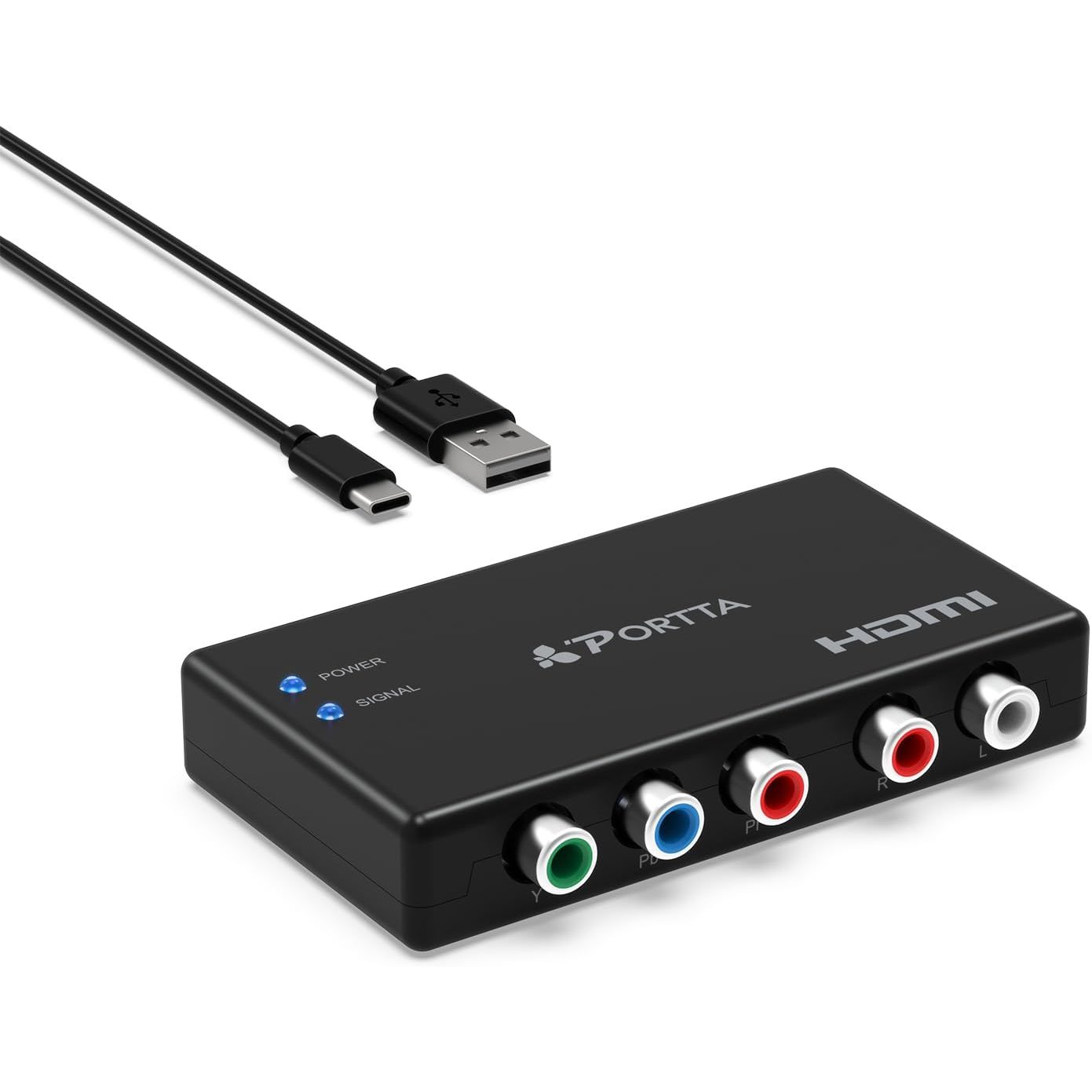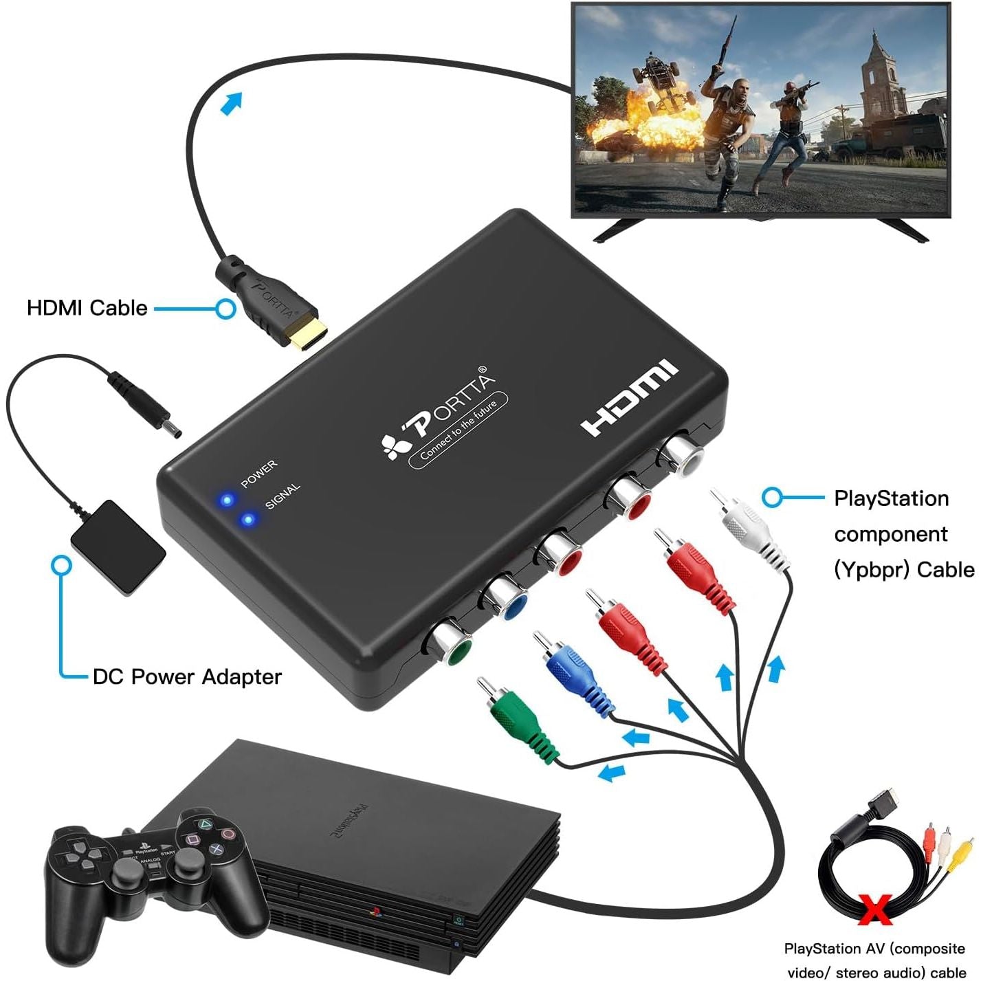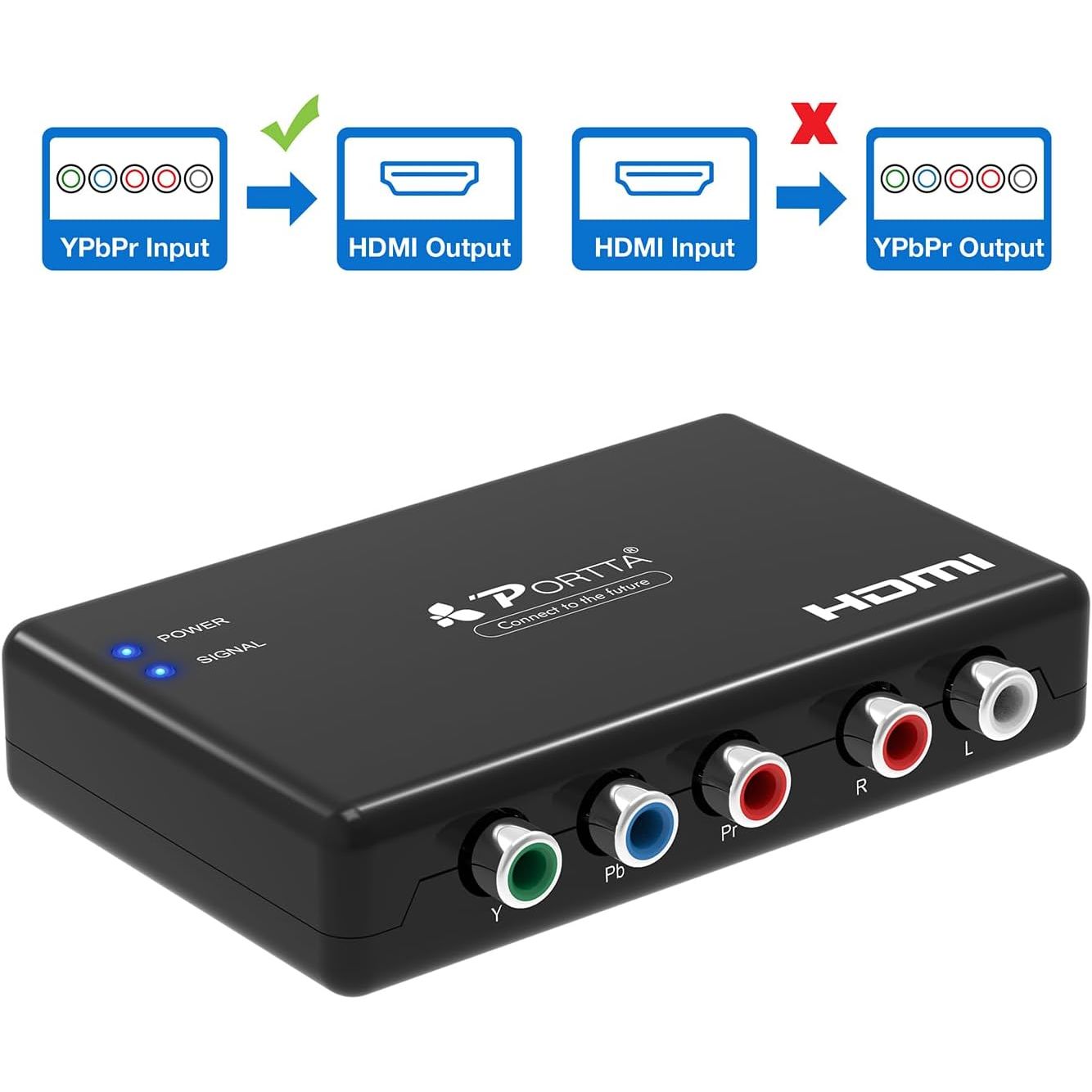 Portta Component to HDMI Converter, YPbPr RGB + R/L Audio to HDMI Converter v1.3 Support 1080P 2 Channel LPCM for HDTV PS2 PS3 HDVD Player Wii Xbox (Component to HDMI) (Converter Without HDMI Cable)