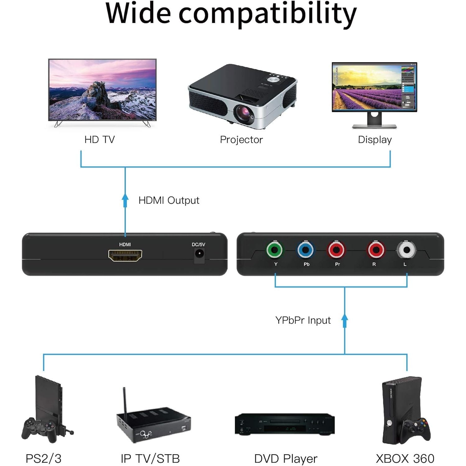 - 【WIDE COMPATIBILITY】This converter is compatible with Component and HDMI devices. Compatible with PS2, PS3 PSP, Xbox, Nintendo Switch, DVD etc. Output: HDTV, Projector, Monitor etc.