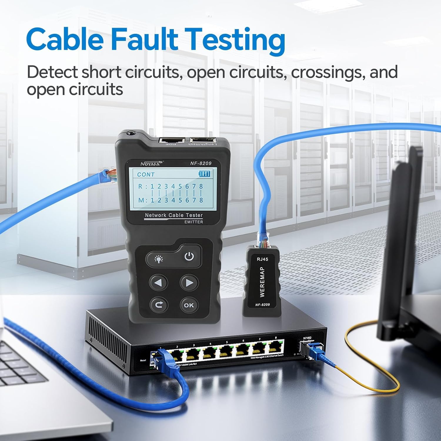 NOYAFA NF-8209 Network Cable Tester, Ethernet Cable Wire Tester with POE & NCV for CAT5/CAT6 Wire Tracer, Length Test, RJ45 Network Tester Kit for Cable Tracer Telephone Line Finder Home Repair