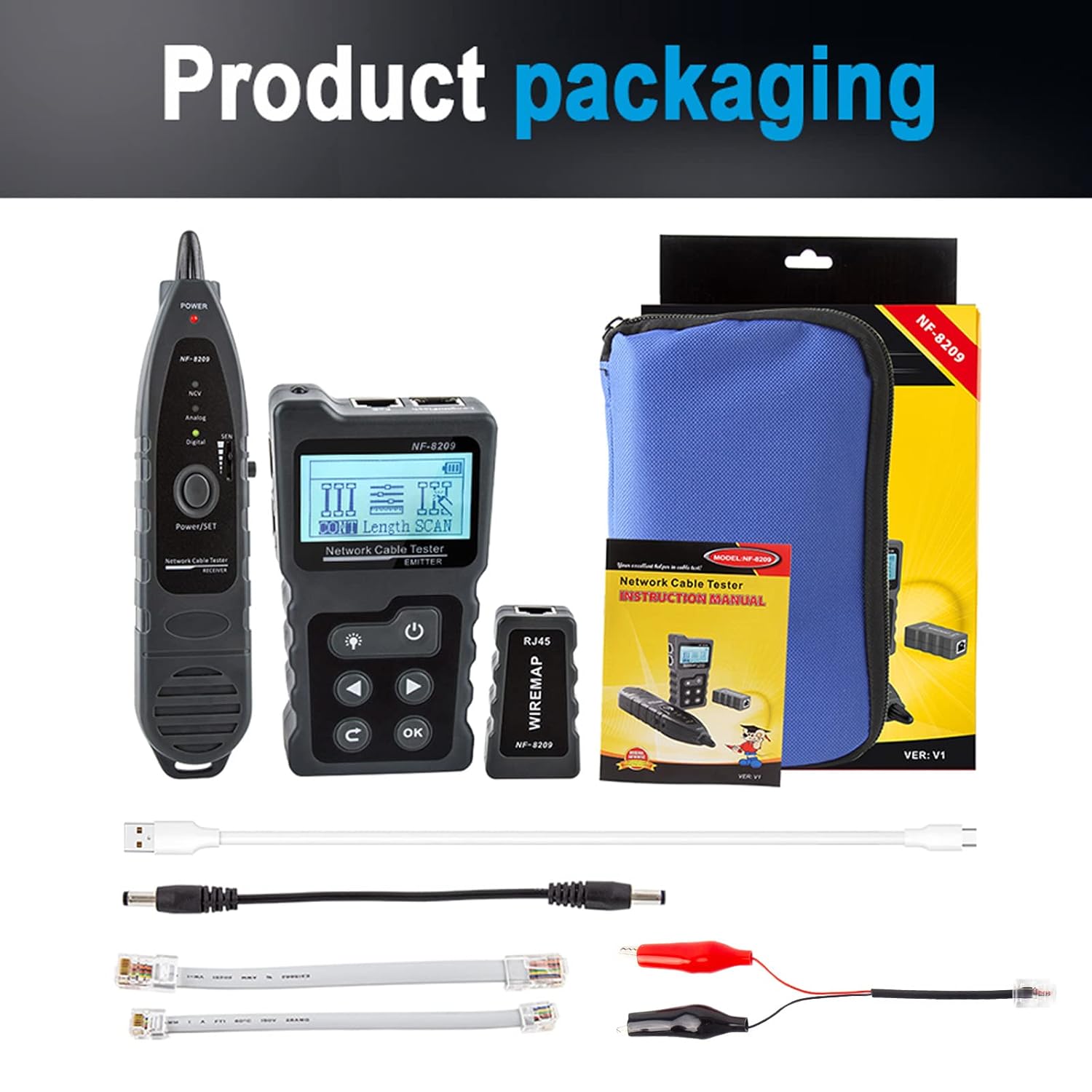 Multi-Cable Tester: NF-8209 ethernet tester is a digital signal receiving technology, integrating the functions of CONT, length test, scanning, POE, FLASH, QC and NCV. The network tester is suitable for CAT5 CAT6/6a cable and PSE standard (at/af standard) testing, recognizing power supply mode and verifying RJ45 cables.
