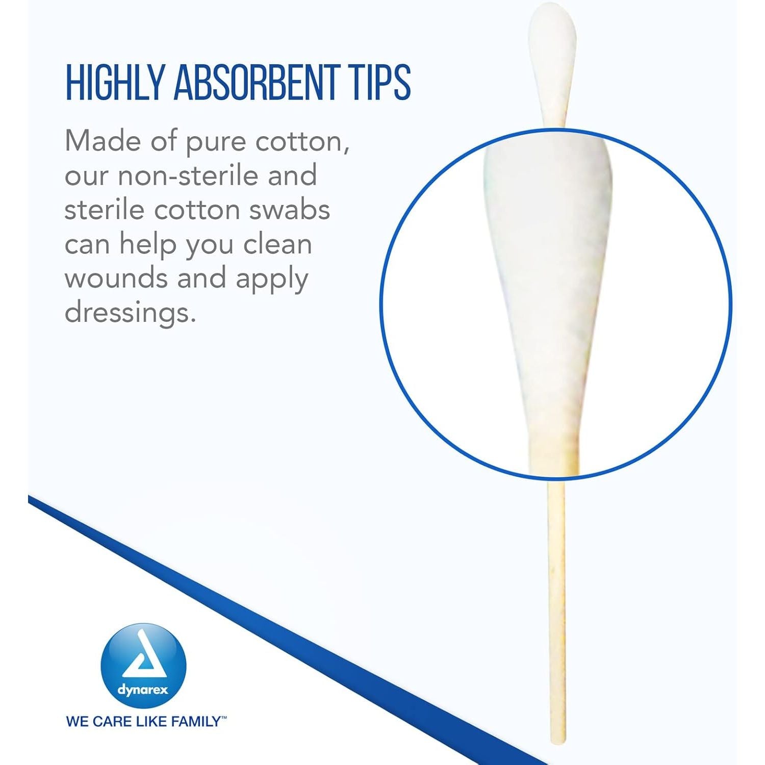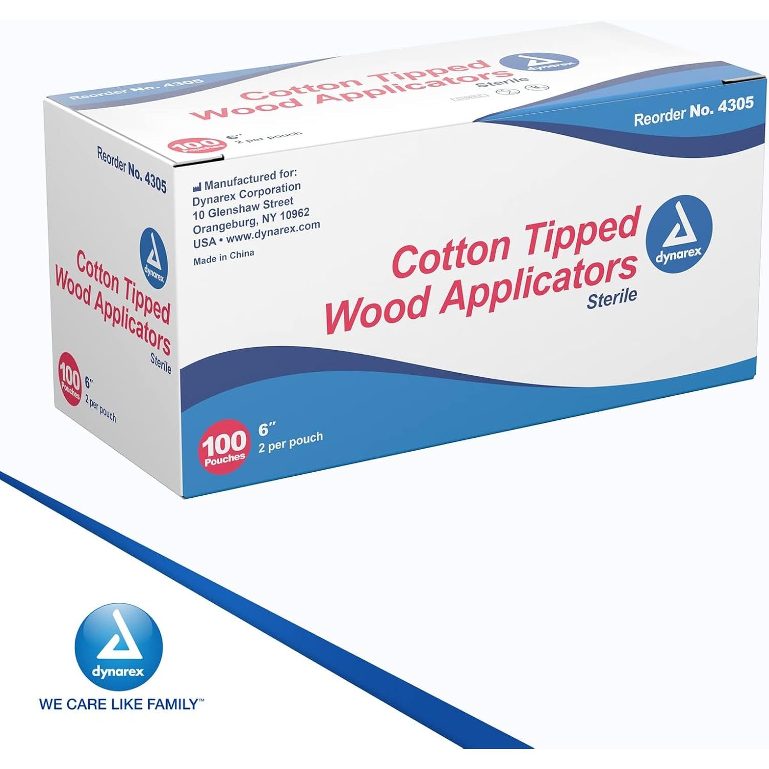 - Dynarex 6-Inch Sterile Cotton Tipped Applicators - Single-Use Wooden Cotton Tip Applicators for Wound Care & Dressing, Hygiene, Make Up, Cleaning Tools, Jewelry - 1 Box of 100 Pouches, 2 per Pouch