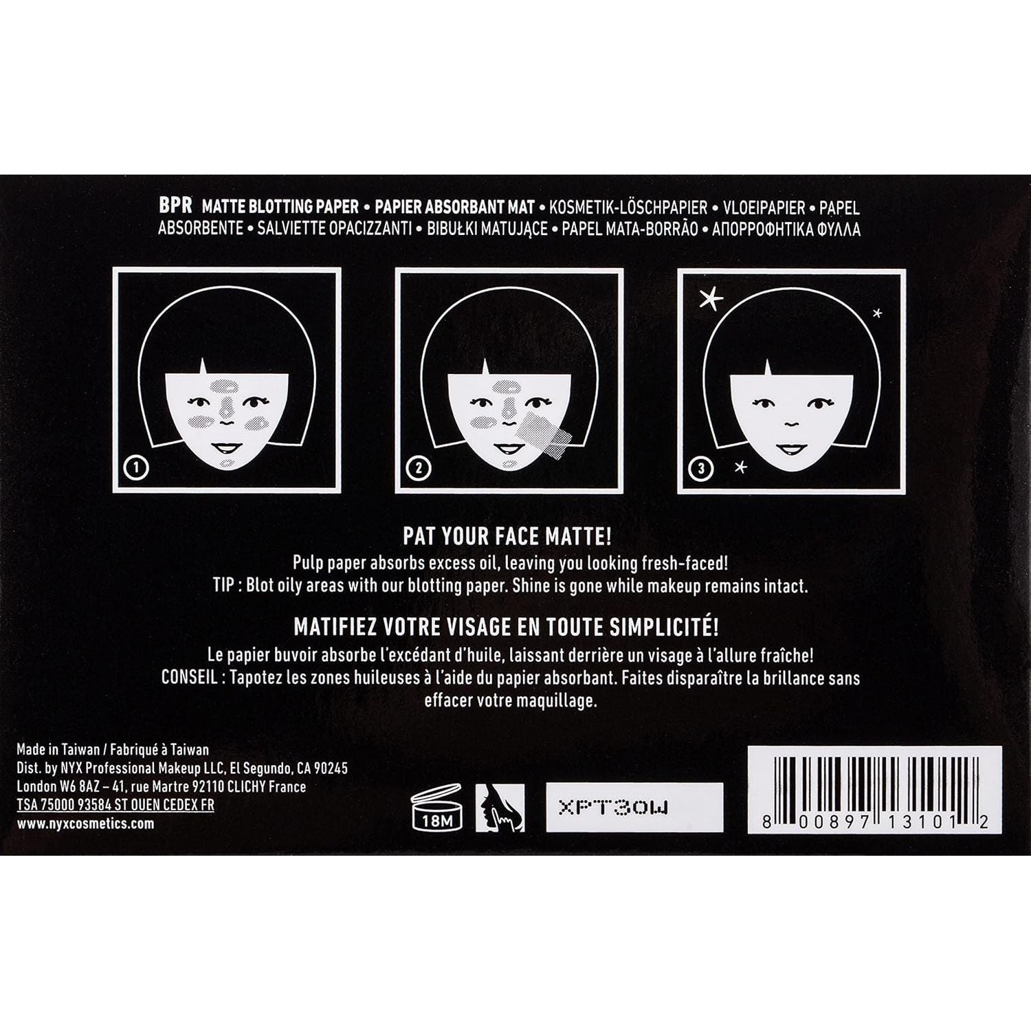 - Blotting Papers: Banish shine with NYX Professional Makeup Blotting Paper; This game changing fan fave comes with 50 sheets of 100 percent pure pulpate paper; Press over makeup to maintain a matte finish without adding color