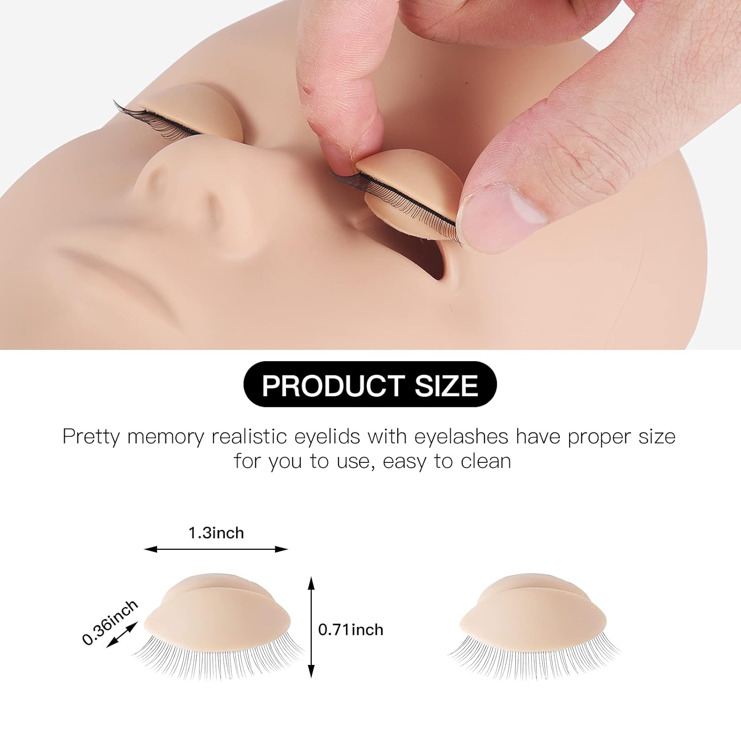 Pretty memory Lash Mannequin Head with 2 Pairs of Removable Practice Eyelids, Realistic Eyelash Mannequin Head, Soft-Touch Lash Extension Supplies for Practice