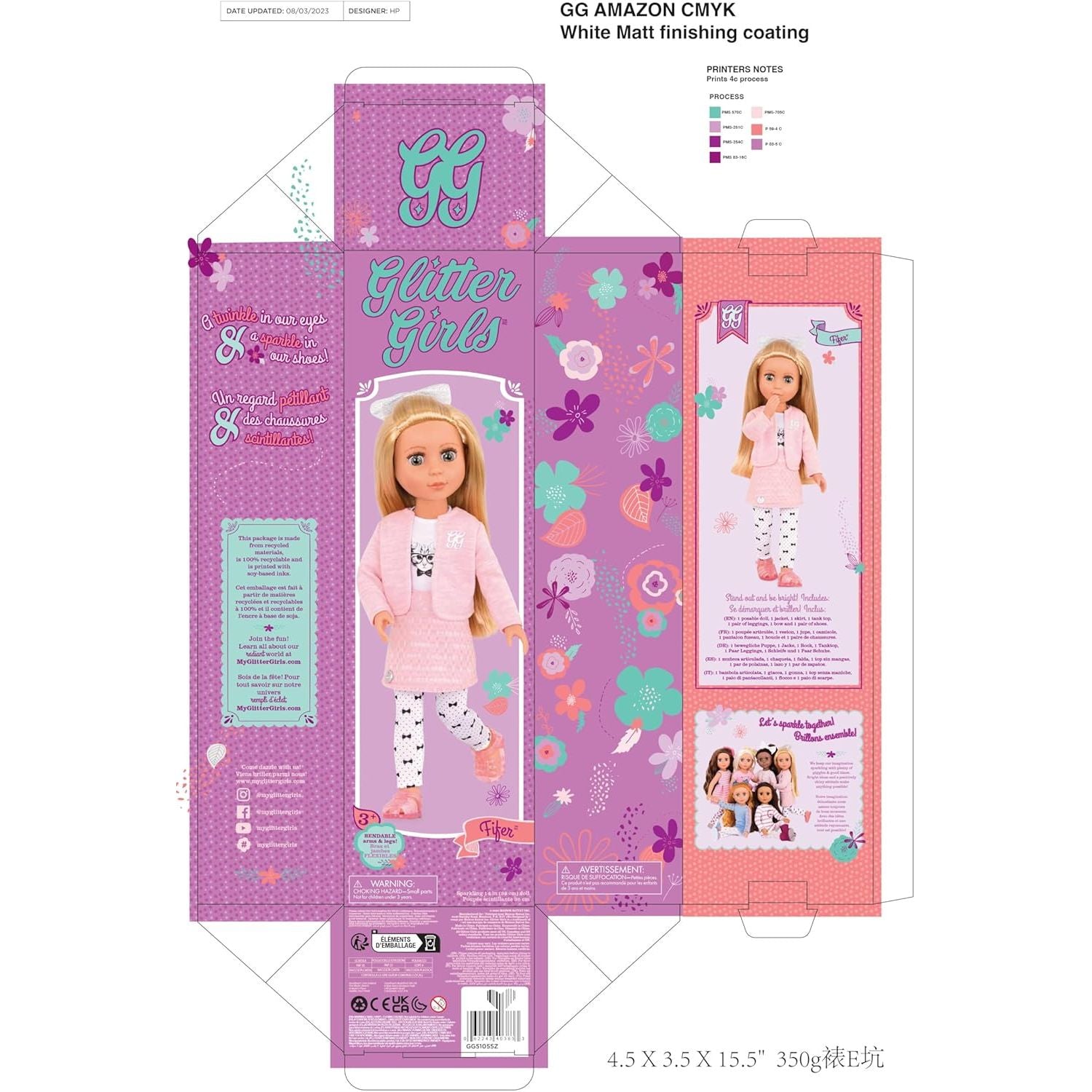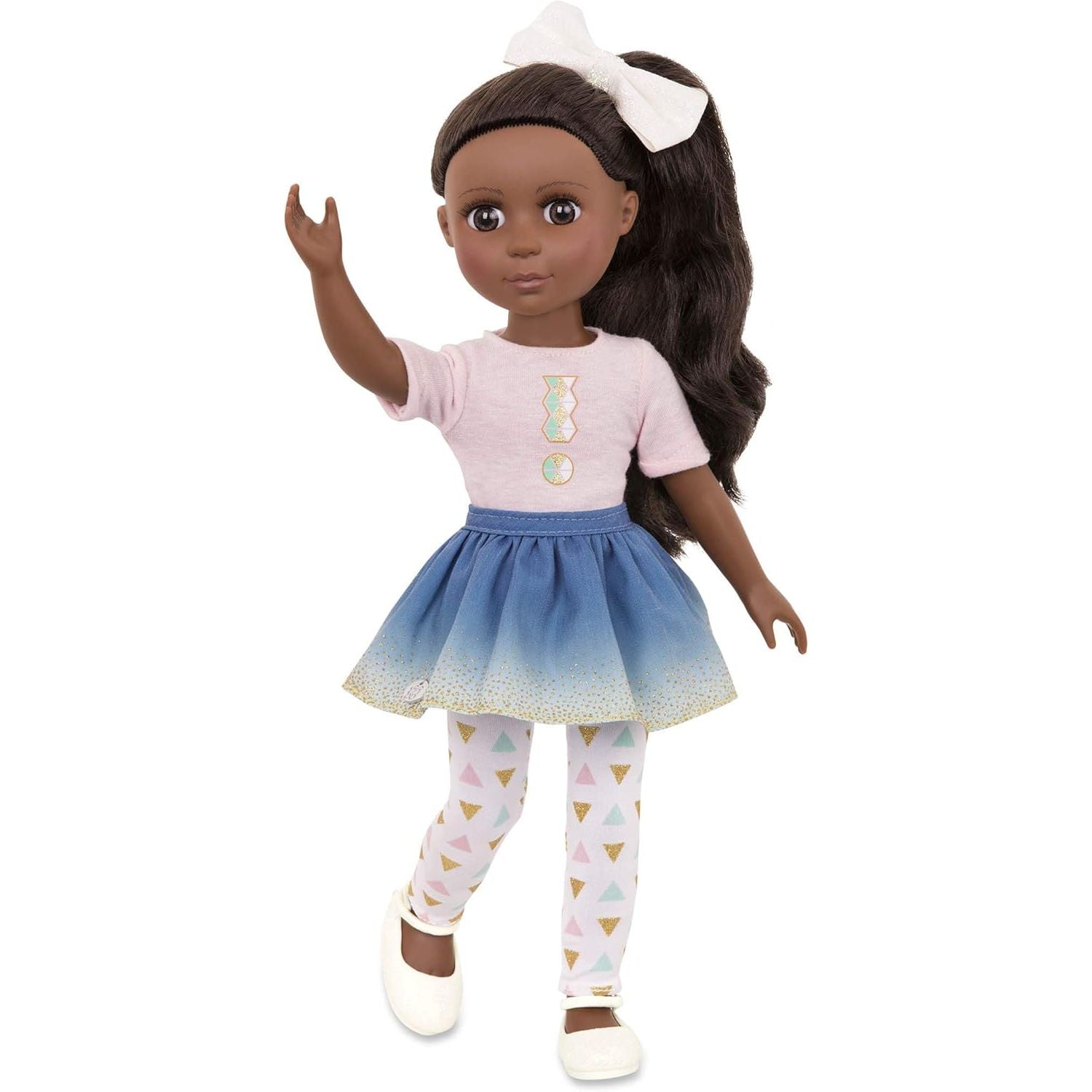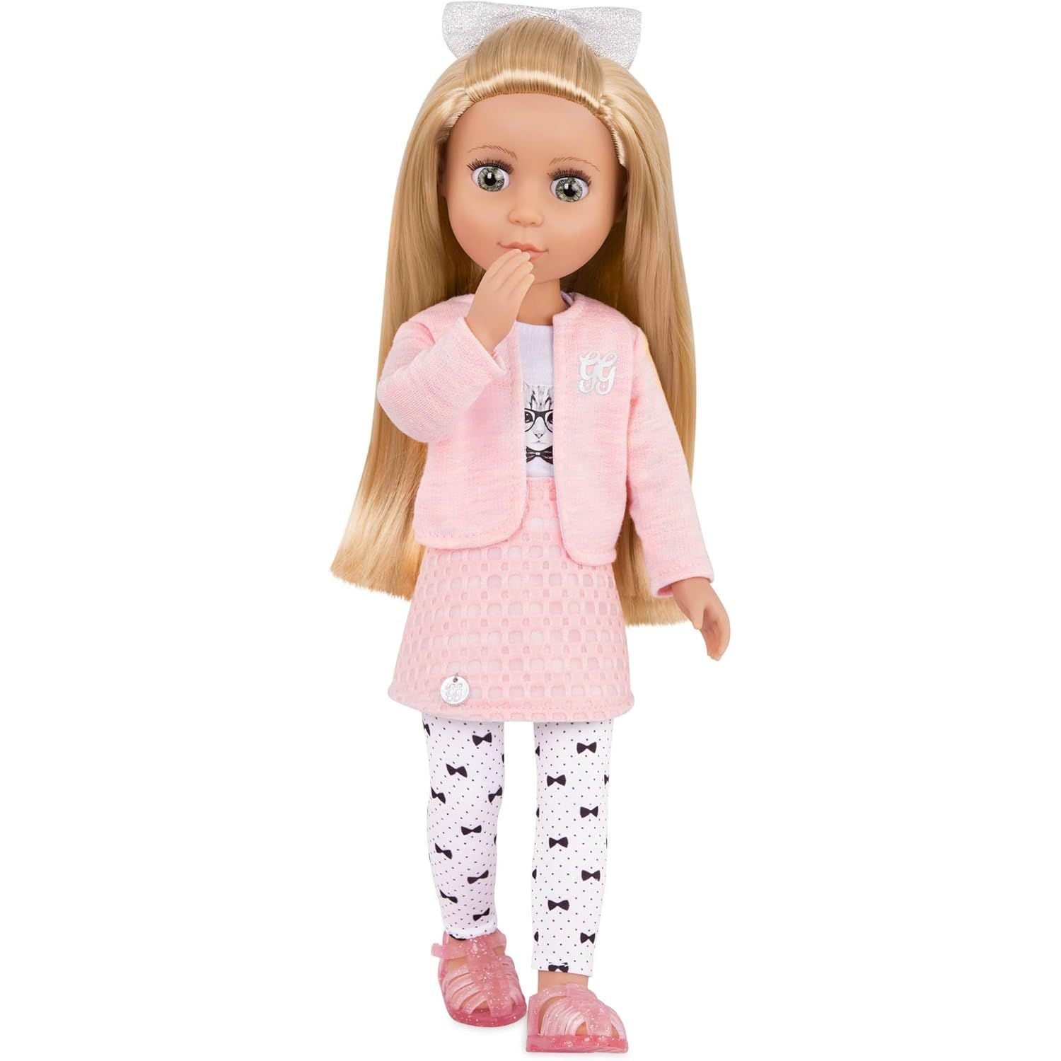 This set included 1 14" Regular doll, 1 jacket, 1 tank, 1 skirt, 1 printed leggings, 1 bow with metal hair clip, 1 ABS charm label and 2 shoes.