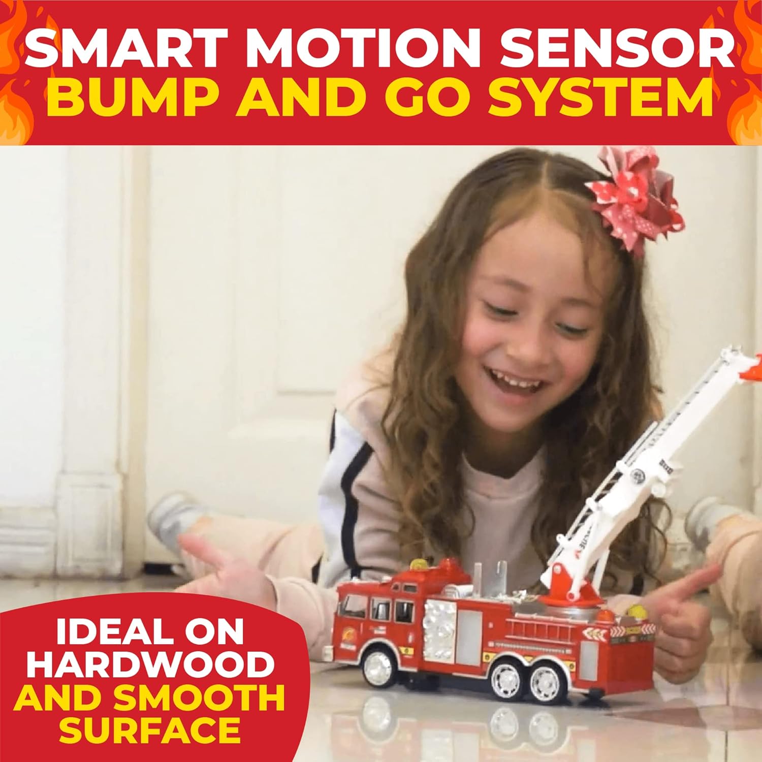 - INNOVATIVE BUMP-AND-GO - This electric fire truck toy navigates around obstacles effortlessly, ensuring uninterrupted playtime. Enjoy non-stop adventure with our remote control fire truck, ideal for boys aged 4-7 who love big trucks.