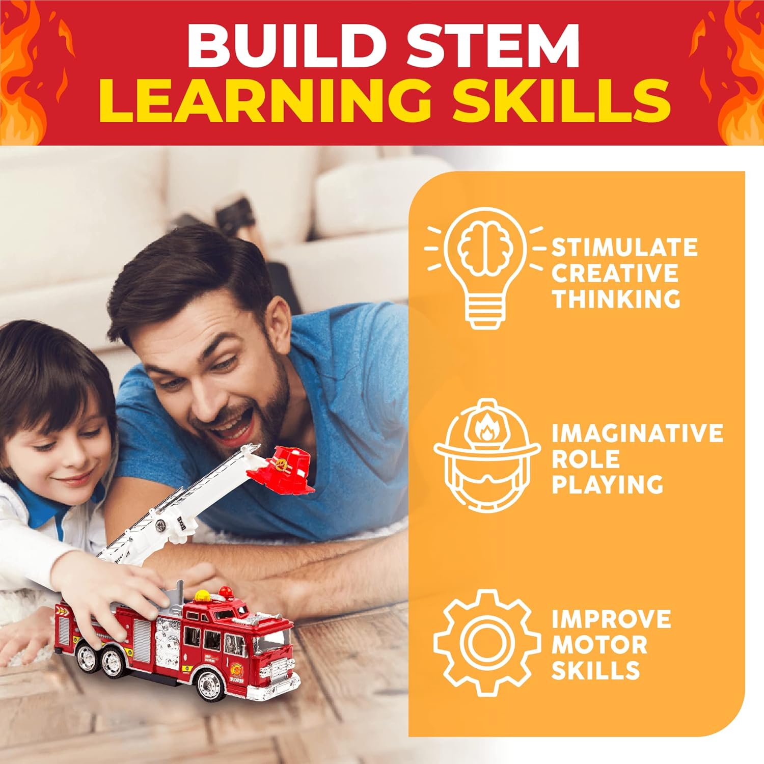 - STIMULATE IMAGINATION - Kids explore endless scenarios, from heroic rescues to exciting missions, enhancing their imaginative play with this firefighter toy truck. It's the perfect toy for boys and toddler trucks enthusiasts, sparking creativity in every play session