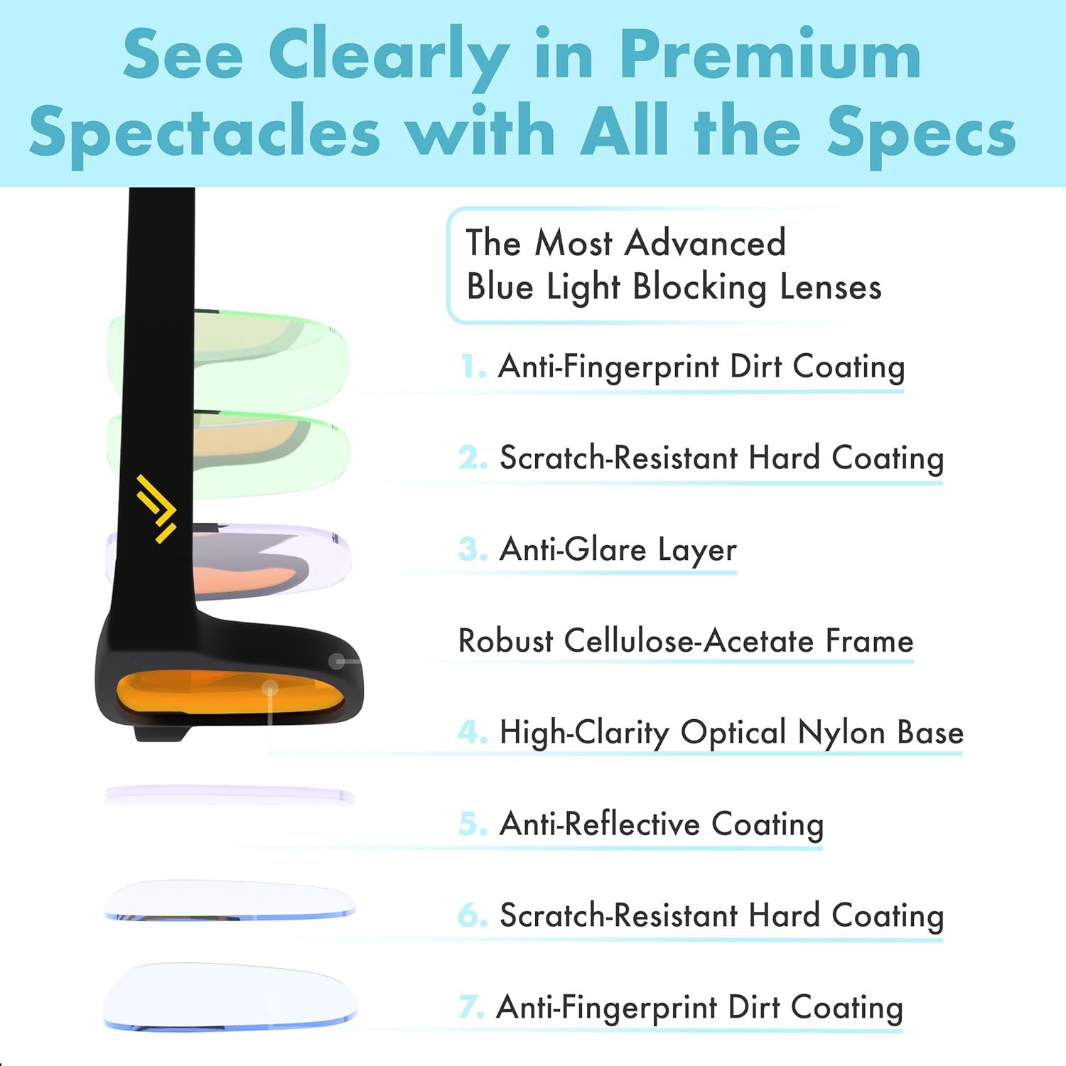 - High-End Design - Block junk light in frames that will last for years to come; Your stylish blue light glasses have a strong, hand-polished acetate frame and spring hinges for improved comfort; One of the must-have pc gaming setup accessories gift for men and women
