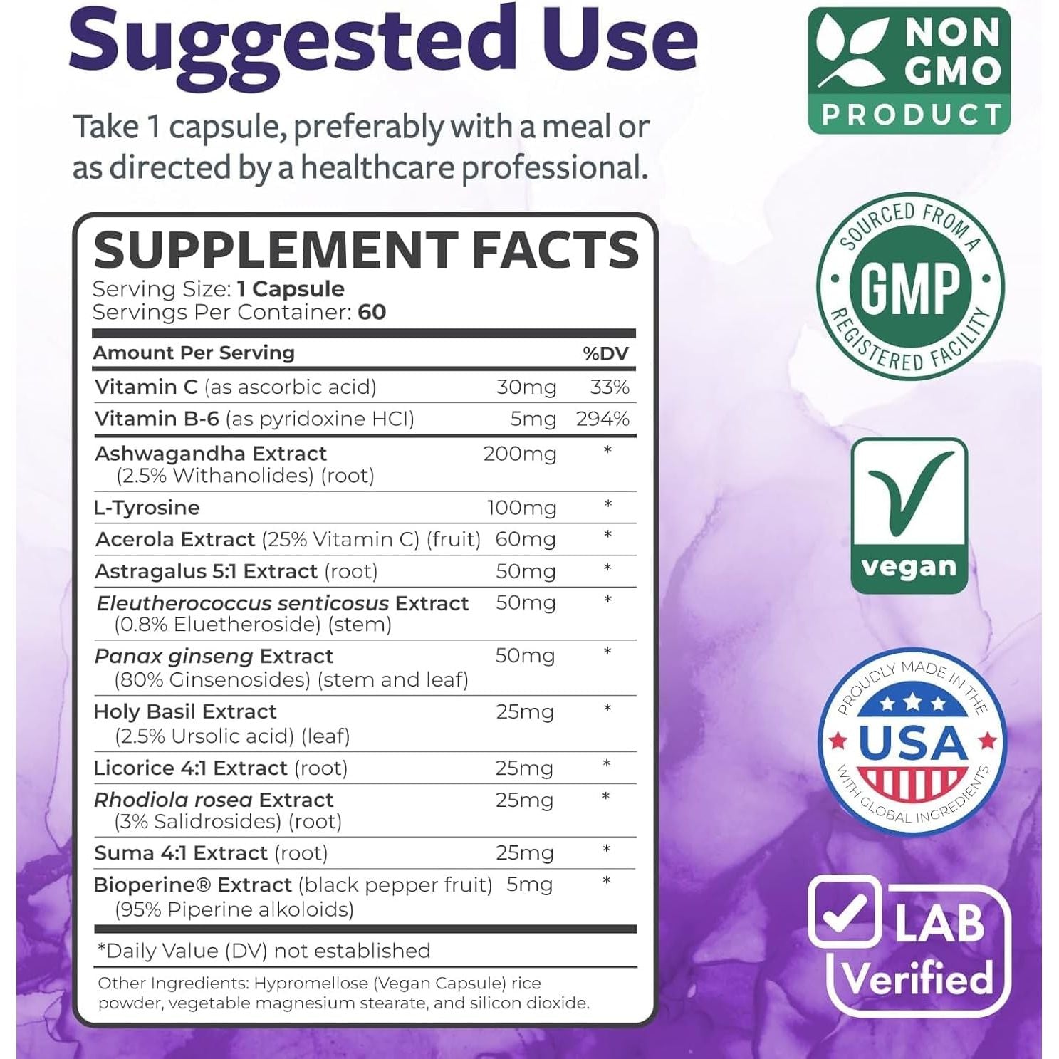 - Maintain Cortisol Balance: From basics like Vitamins C and B6 to Eleutherococcus Senticosus, we’ve carefully selected each ingredient in this adrenal system support supplement for its ability to help regulate occasional stress and maintain normal adrenal system function.