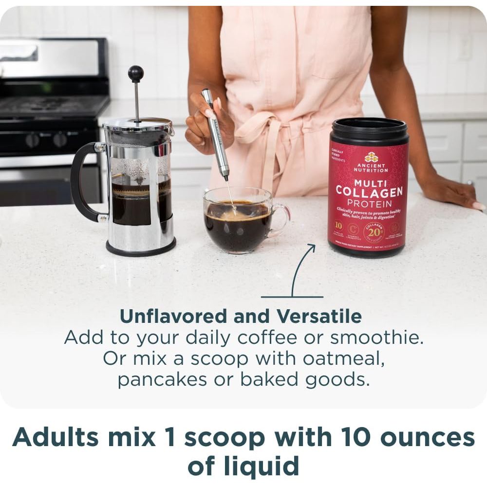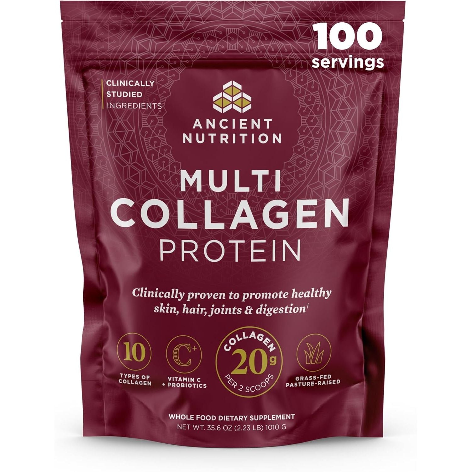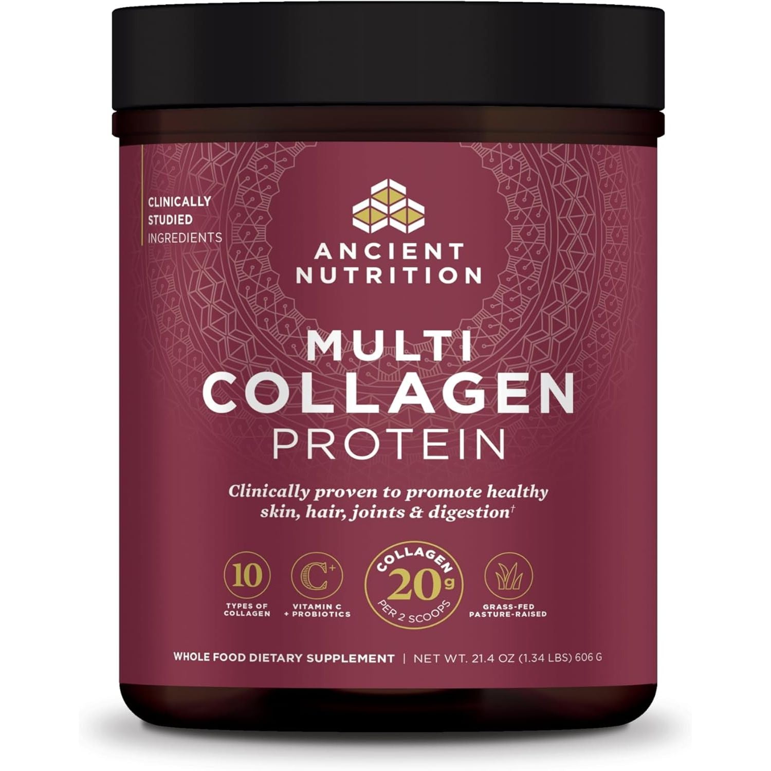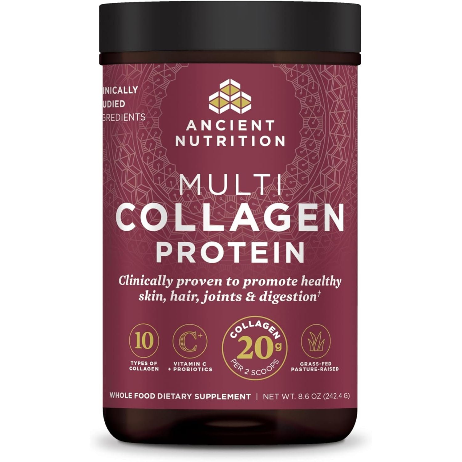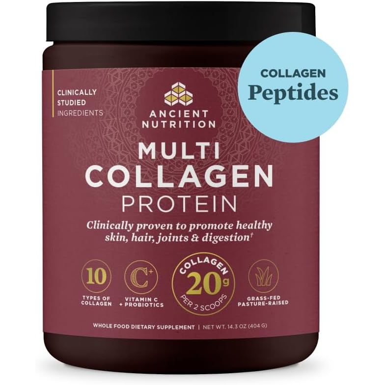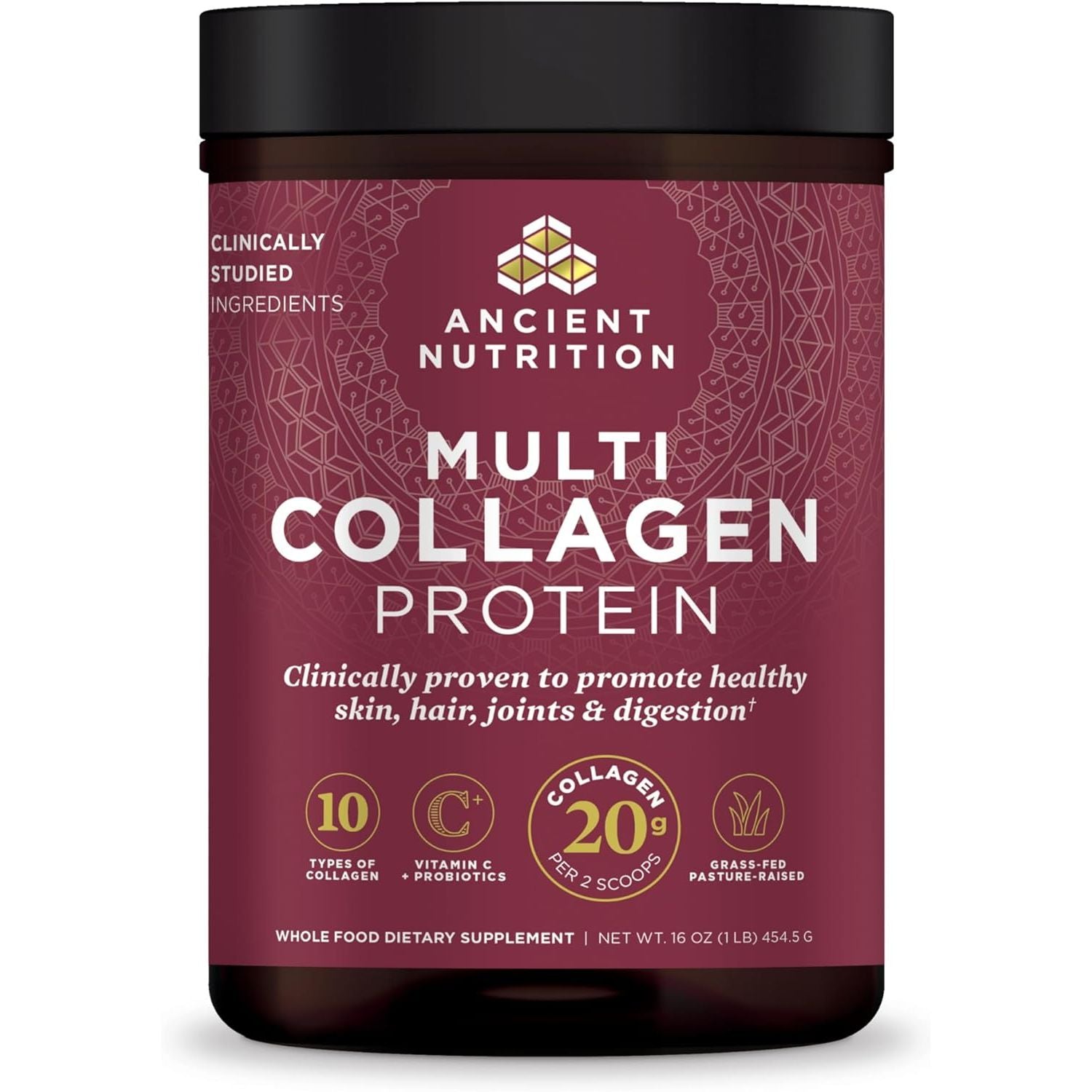 - Ancient Nutrition Collagen Powder Protein with Probiotics, Unflavored Multi Collagen Protein with Vitamin C, 45 Servings, Hydrolyzed Collagen Peptides Supports Skin and Nails, Gut Health, 16oz