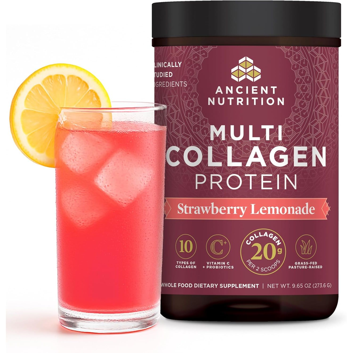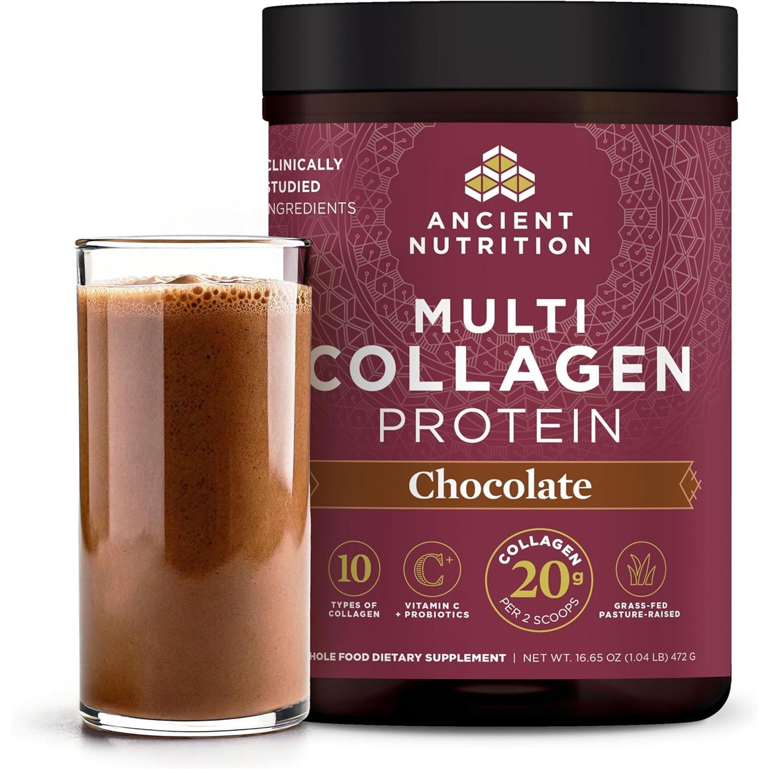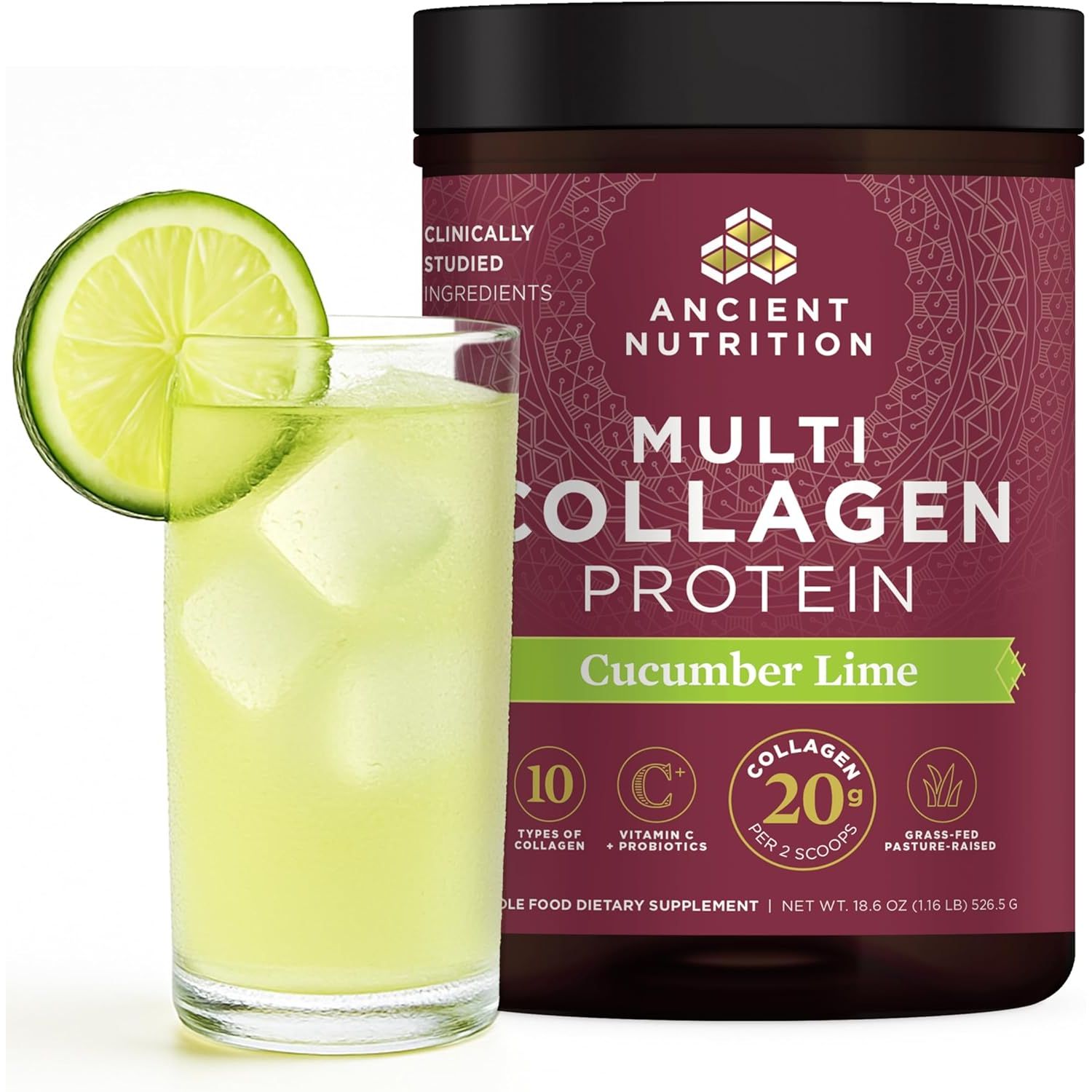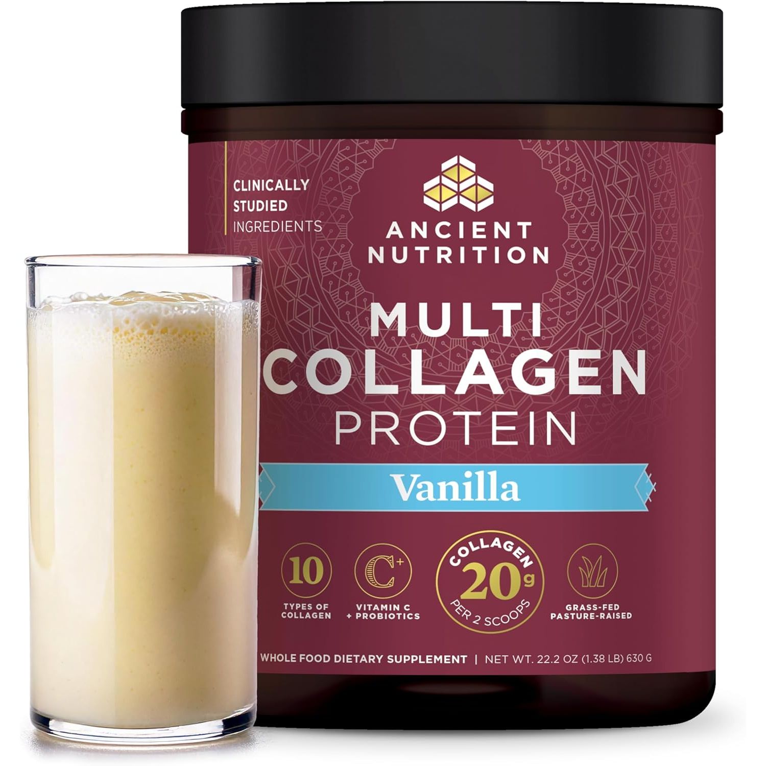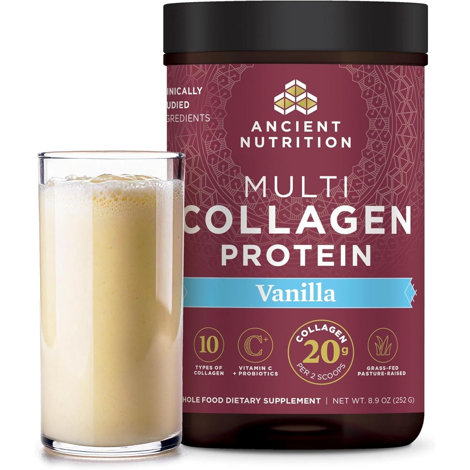 - Ancient Nutrition Collagen Powder Protein with Probiotics, Unflavored Multi Collagen Protein with Vitamin C, 45 Servings, Hydrolyzed Collagen Peptides Supports Skin and Nails, Gut Health, 16oz