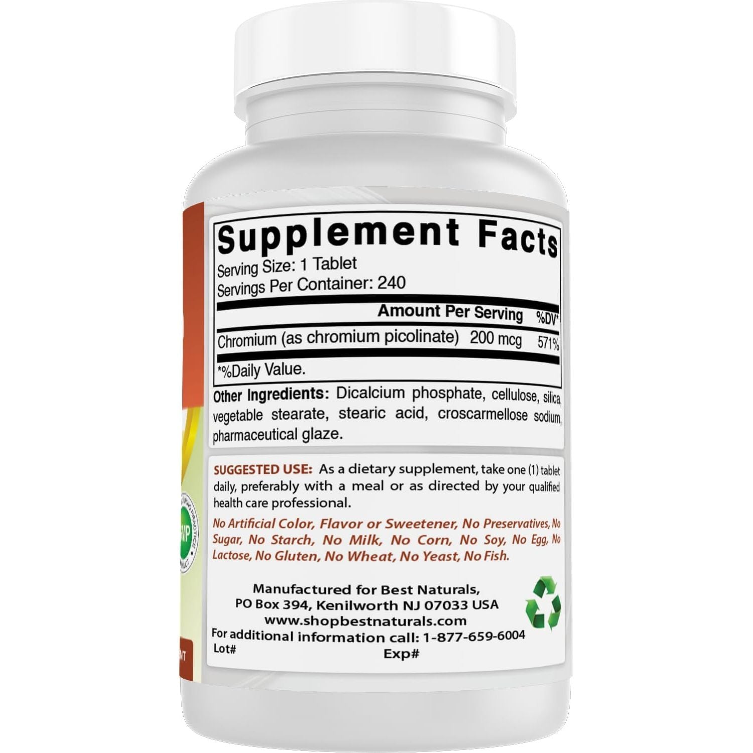 - Best Naturals Chromium Picolinate Tablet, 200 mcg, 240 Count