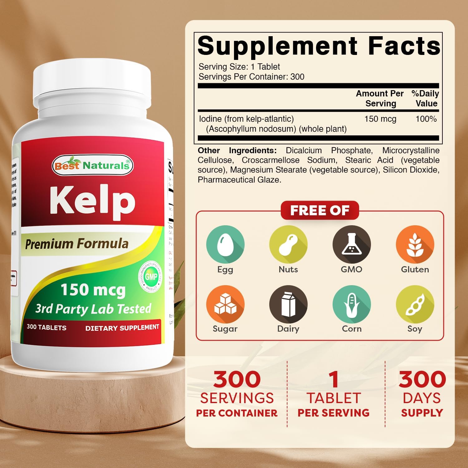 - Best Naturals Kelp Supplement 150 Mcg Tablet, 300 Count