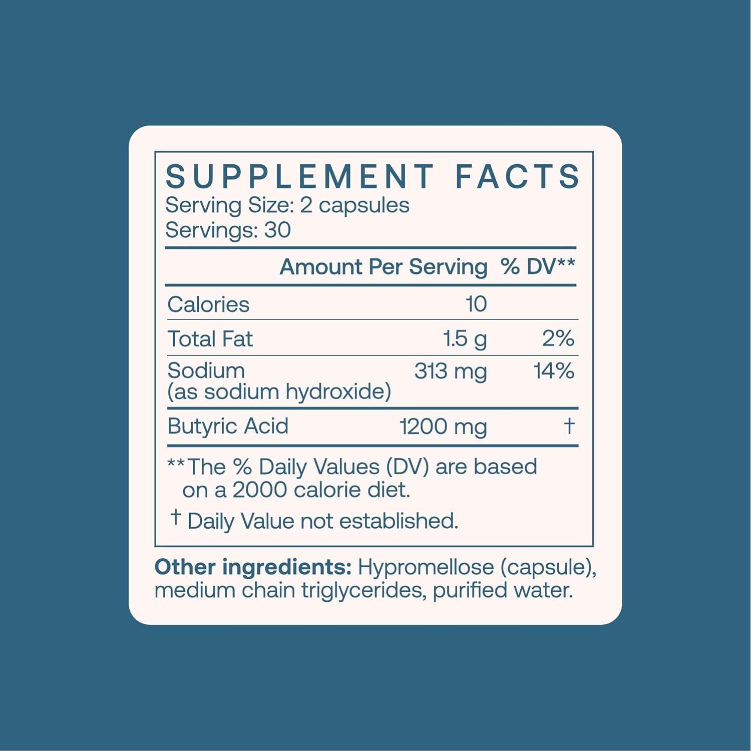 - No Fillers or Additives vegan capsules: We do not use fillers or additives to mask the scent of Butyrate. We create butyrate exactly as it’s formed in the colon. All natural ingredients and free of wheat, gluten, yeast, corn, soy, dairy, artificial colors, and resins.