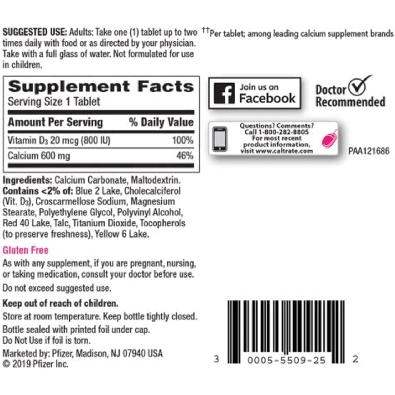 - Caltrate 600 Plus D3 Calcium and Vitamin D Supplement Tablets, Bone Health Supplements for Adults - 200 Count