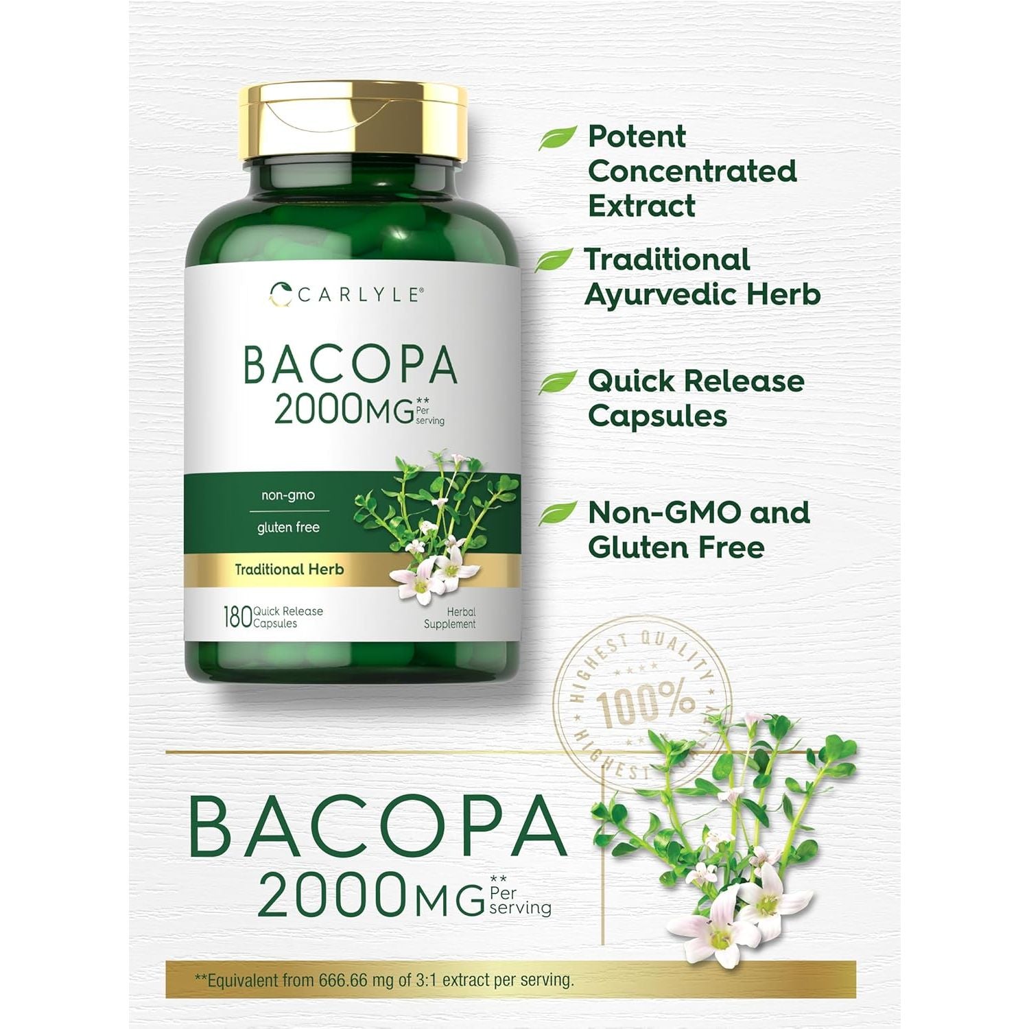 - Carlyle Bacopa Monnieri Capsules | 180 Capsules | Gluten Free Supplement