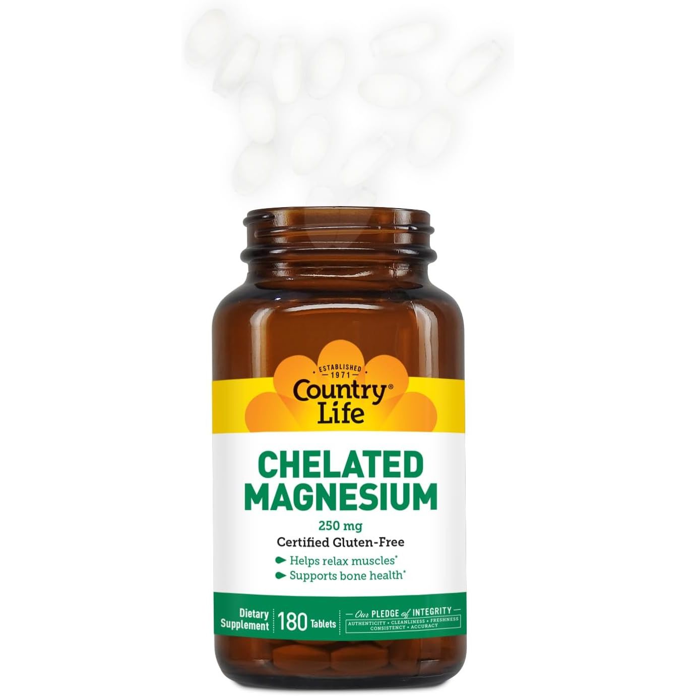 Did you know our bodies need magnesium for more than 300 biochemical reactions in the body? Country Life Chelated Magnesium delivers 250mg of this crucial mineral per dose to support bone, muscle and immune health. Magnesium also promotes a steady heart rhythm and helps maintain an already normal blood flow. Simply take 1 tablet daily with a meal for health and wellness.