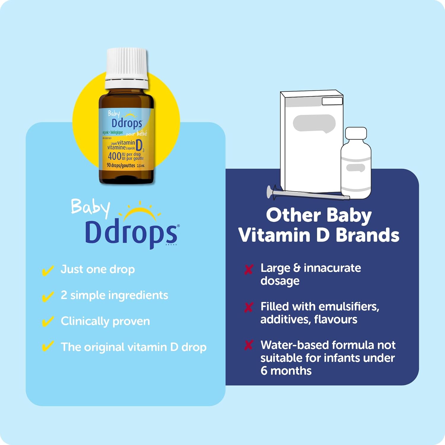 Baby Ddrops is a natural-sourced supplement of vitamin d. Baby Ddrops is tasteless and odorless, and contains no preservative, no artificial flavor and no added Colour. Ddrops is wheat-free, gluten-free, soy-free, corn-free, sugar-free, milk-free and peanut-free. It is easy to use and is specifically designed for breastfed babies. It is designed to be sucked off any clean surface such as mother’s nipple or pacifier. It can also be dropped onto food or into liquids once the baby is older and begins to eat solids.