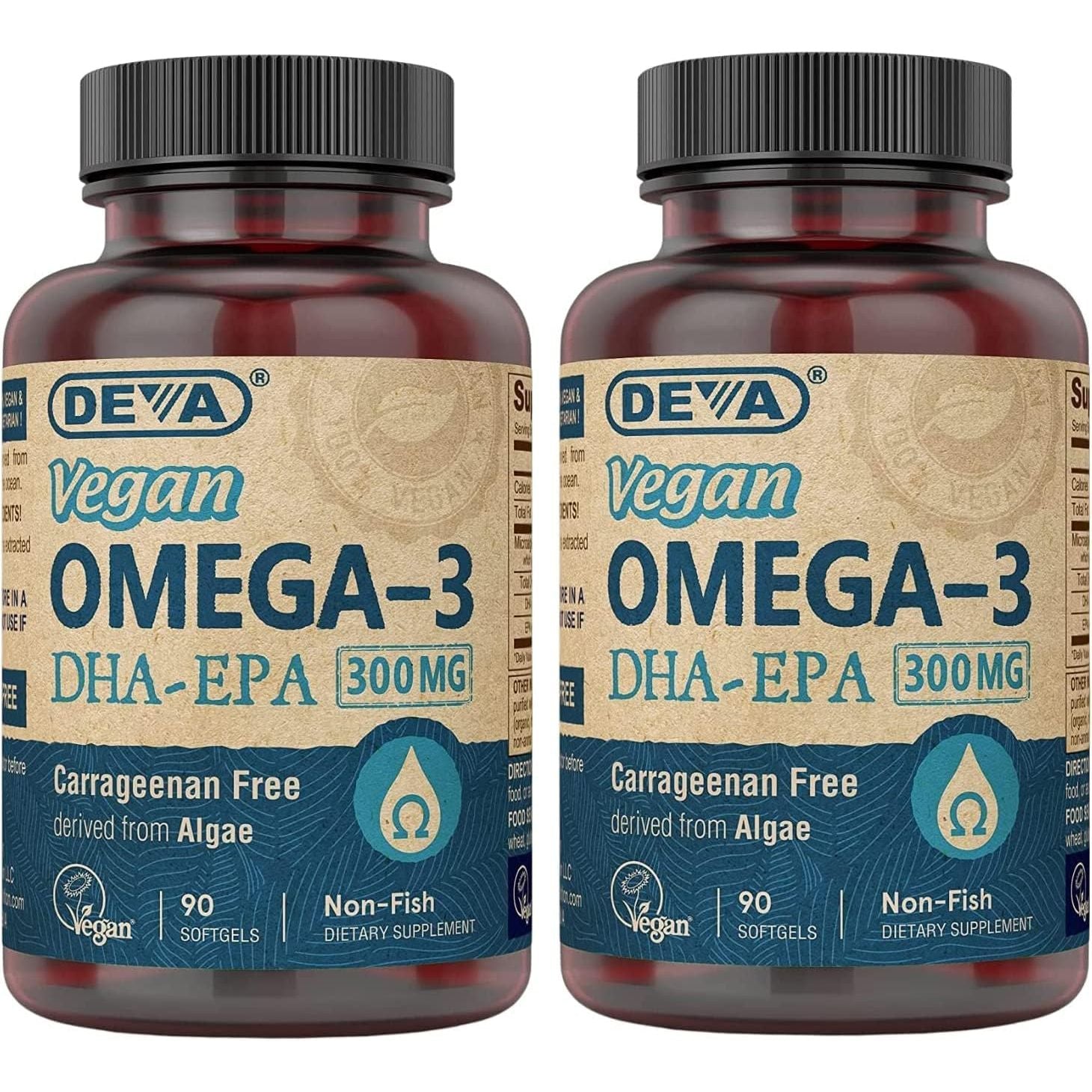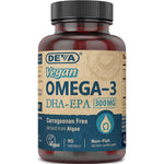 - DEVA Vegan Omega-3 DHA EPA Supplement Once-Per-Day Softgel 300 MG - Carrageenan Gelatin & Gluten Free - Non-Fish Algae Oil Fatty Acids - 90 Softgels