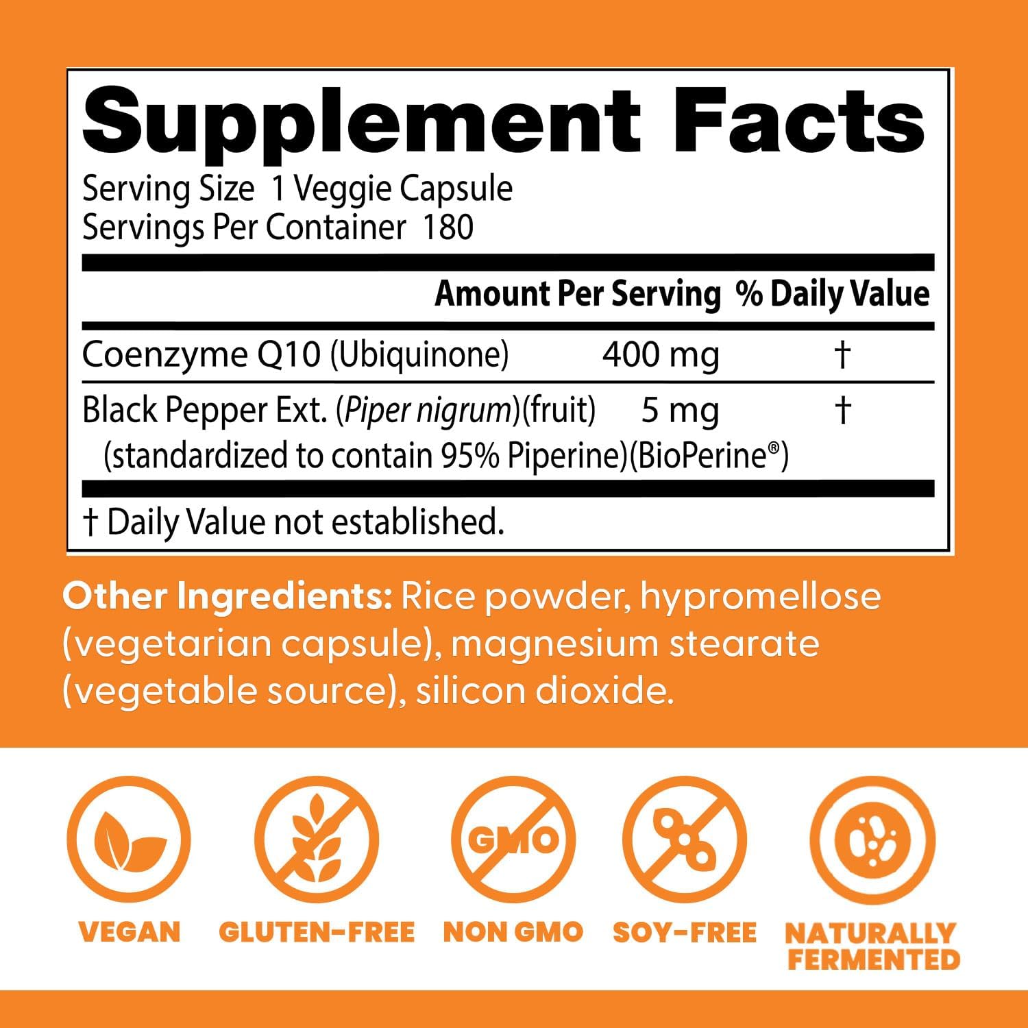 - FORMULATED WITH BIOPERINE: A natural black pepper extract. CoQ10 taken with BioPerine enhances nutrient absorption and bioavailability.* Naturally fermented, pharmaceutical grade CoQ10 manufactured to high quality standards.