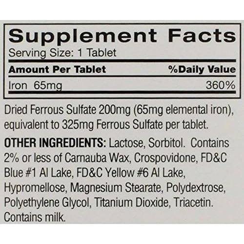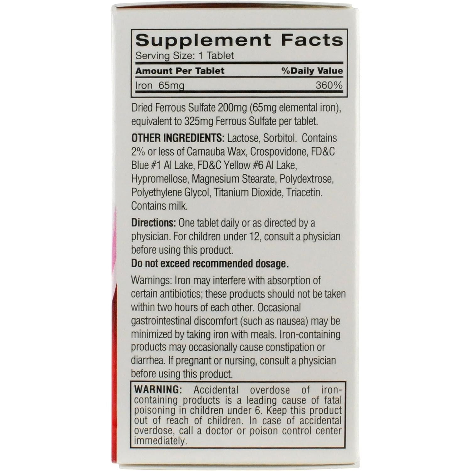 - High Potency Iron Supplements for Women, Men, and Children Over 12: Each Feosol Original tablet contains 65 mg of elemental iron, equivalent to 325 mg of ferrous sulfate, which provides 360% of Daily Value, making it a high potency iron supplement