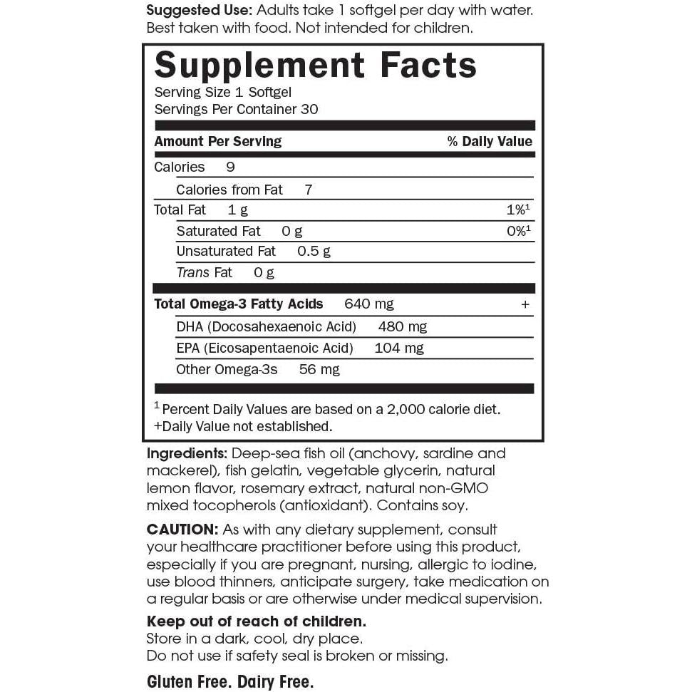 Minami Supercritical Prenatal Omega 3 Fish Oil is a concentrated 75% omega-3 supplement made from the purest fish oil. Utilizing our dual supercritical CO2 extraction technology delivers over 600mg of omega-3s including 480mg of DHA in just one softgel a day. Prenatal DHA contains no saturated fat (unlike other fish oils which are two thirds saturated fat). It has a clean Lemon flavor, with no fishy aftertaste. This once daily formula for women is designed to support baby's brain development as well as prenatal health, breastfeeding and lactation.† Garden of Life offers fish oil and other dietary supplements that contain omega fatty acids. Omega fatty acids support the structure and function of the brain and other cells in the body. These sustainably sourced supplements deliver various combinations of omega-3 fatty acids, including EPA (eicosapentaenoic acid), DHA (docosahexaenoic acid) and DPA (docosapentaenoic acid). As essential building blocks of cellular membranes, EPA and DHA play critical roles in maintaining brain and body health. EPA plays a role in supporting a healthy inflammatory response at the cellular level, while DHA is the most abundant omega-3 found in the brain and is important for maintaining brain and nerve cell structure and function. Additionally, DHA and EPA promote healthy blood flow, which is essential to optimal brain function, memory retention and overall health. †These statements have not been evaluated by the Food and Drug Administration. This product is not intended to diagnose, treat, cure or prevent any disease.