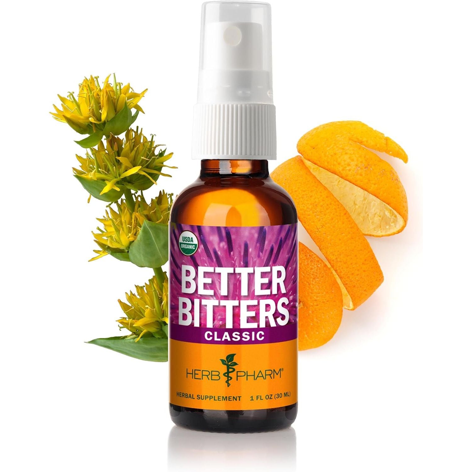 Support your digestive system with herb pH arms better Bitters. Formulated with an extract Blend of orange peel Burdock Root anise seed artichoke leaf ginger rhizome and Gentian rhizome with root. Gentian root provides a classic bitter flavor. Comes in a convenient spray form making it easy to add Bitters to your daily routine. Non-gmo + gluten-free. Contains a small amount of organic cane alcohol.