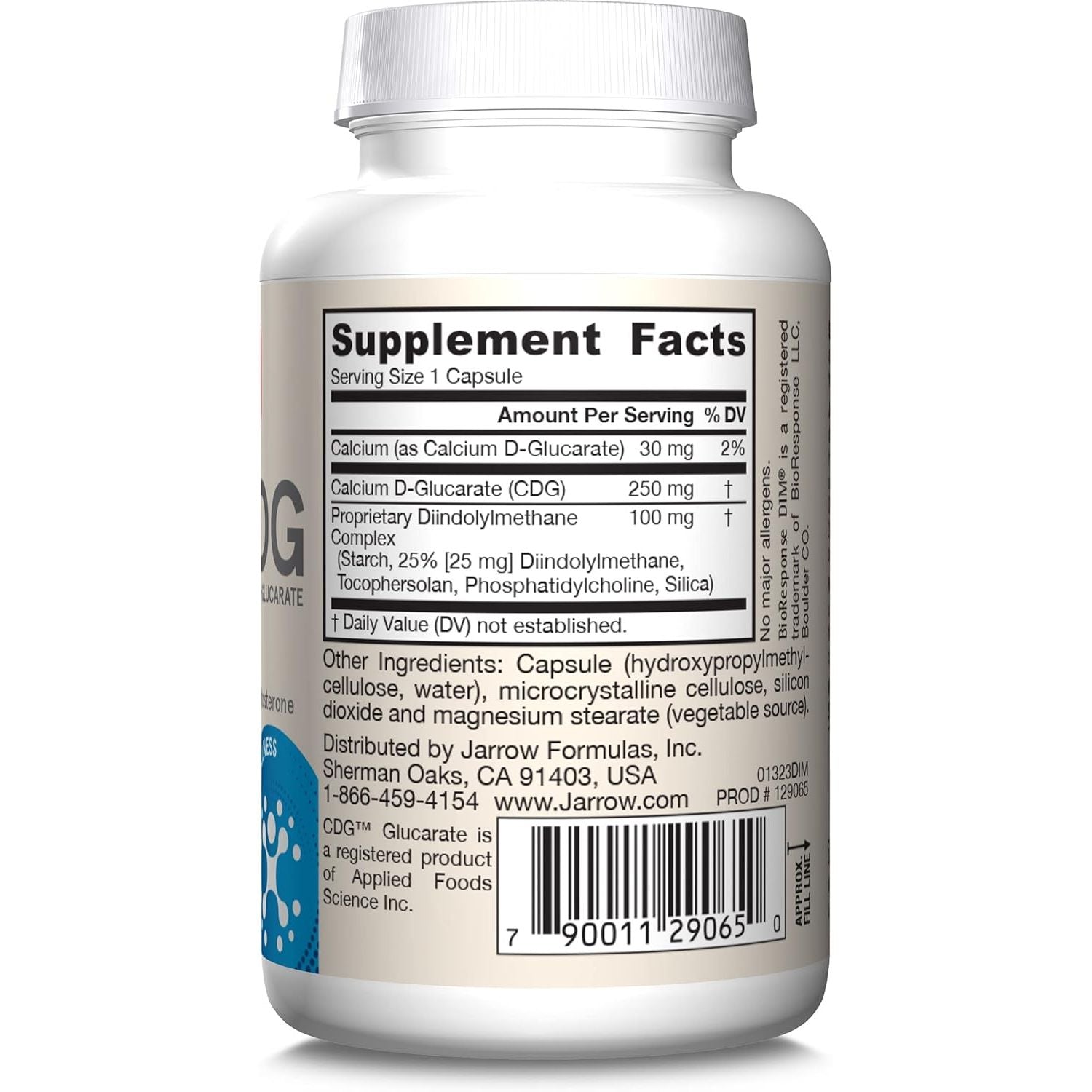 - DIM + CDG Supplement: Each capsule serving of DIM+CDG provides 250 mg Calcium D-Glucarate (CDG), and 100 mg Diindolylmethane complex (DIM).