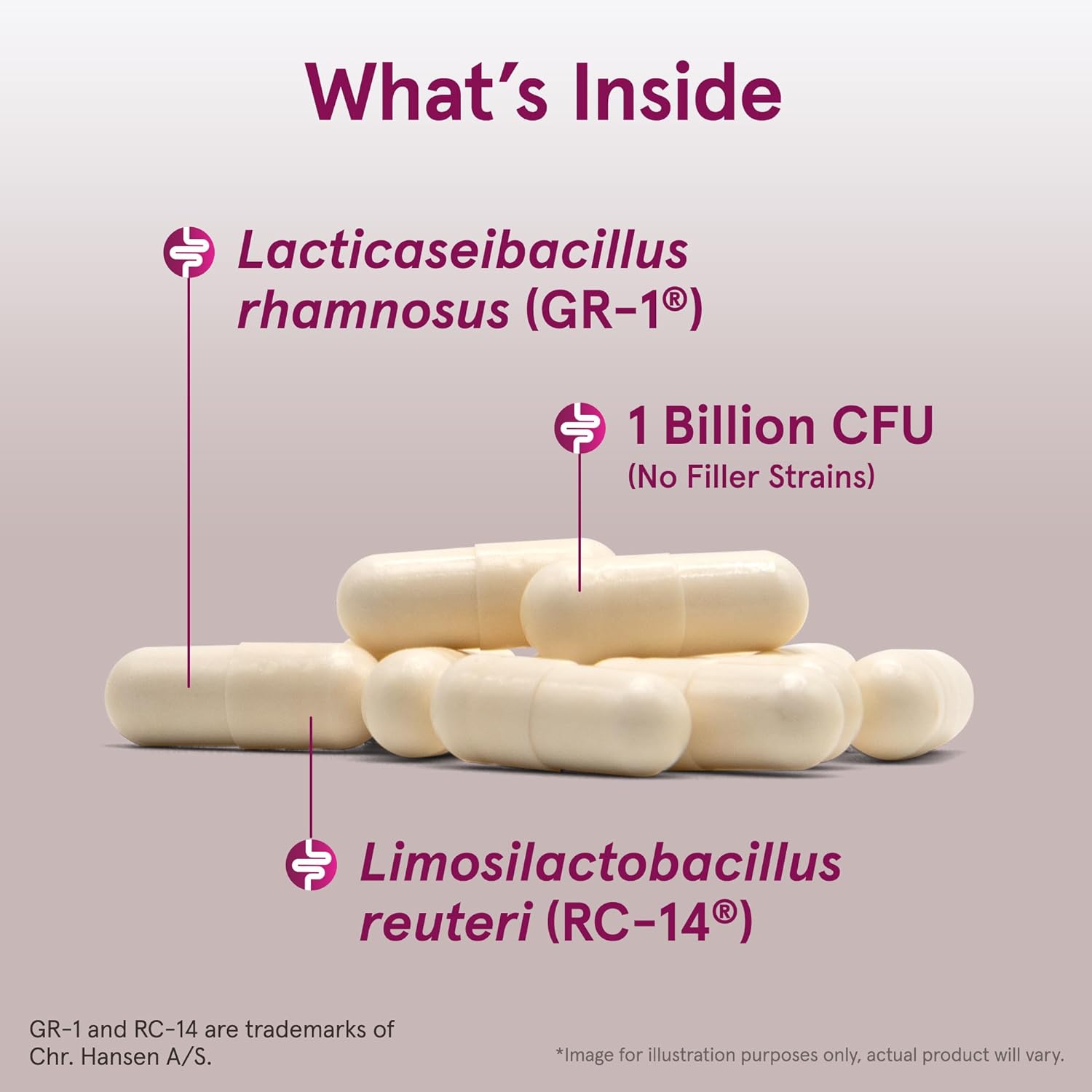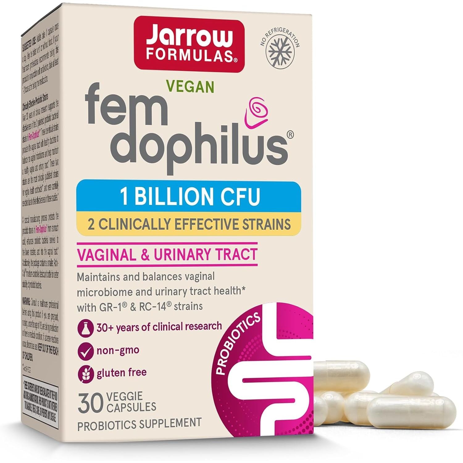 - GR-1 and RC-14: Fem-Dophilus contains two clinically documented probiotic lactobacilli strains, GR-1 and RC-14; A special manufacturing process protects probiotic strains from stomach acid and enhances probiotic bacterial survival to the lower intestine