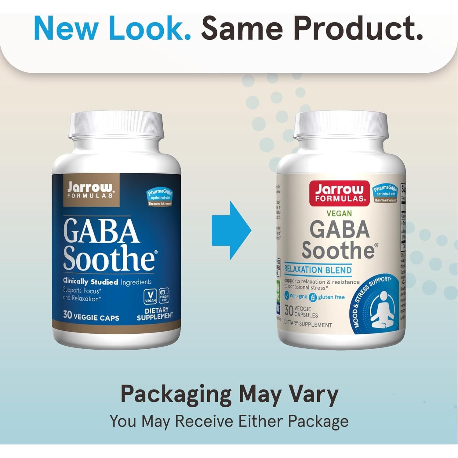 We use superior science to make smarter formulas like Jarrow Formulas GABA Soothe formula, which includes 3 well-studied ingredients that support focus (naturally fermented GABA), relaxation without drowsiness (theanine found naturally in the tea plant), and resistance to stress (ashwagandha extract). These statements have not been evaluated by the Food and Drug Administration. This product is not intended to diagnose, treat, cure or prevent any disease.