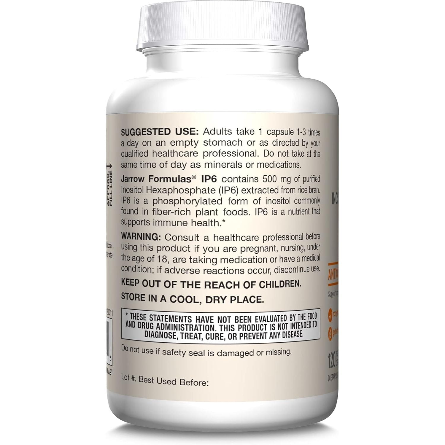 We use superior science to make smarter formulas like Jarrow Formulas IP6, which contains 500 mg of purified Inositol Hexaphosphate (IP6) from rice bran. IP6 is a phosphorylated form of inositol commonly found in fiber-rich plant foods. IP6 is a nutrient that supports immune health. These statements have not been evaluated by the Food and Drug Administration. This product is not intended to diagnose, treat, cure or prevent any disease.