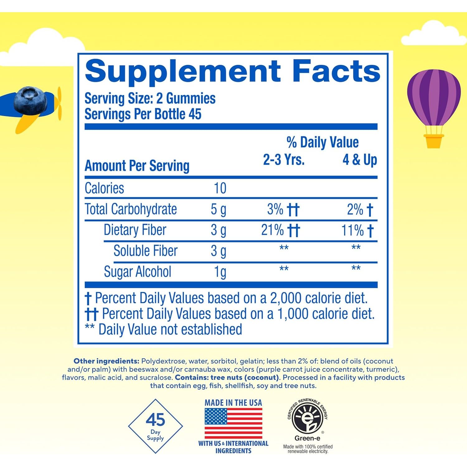 - Each serving of Children’s supplement contains 3 grams of Fiber