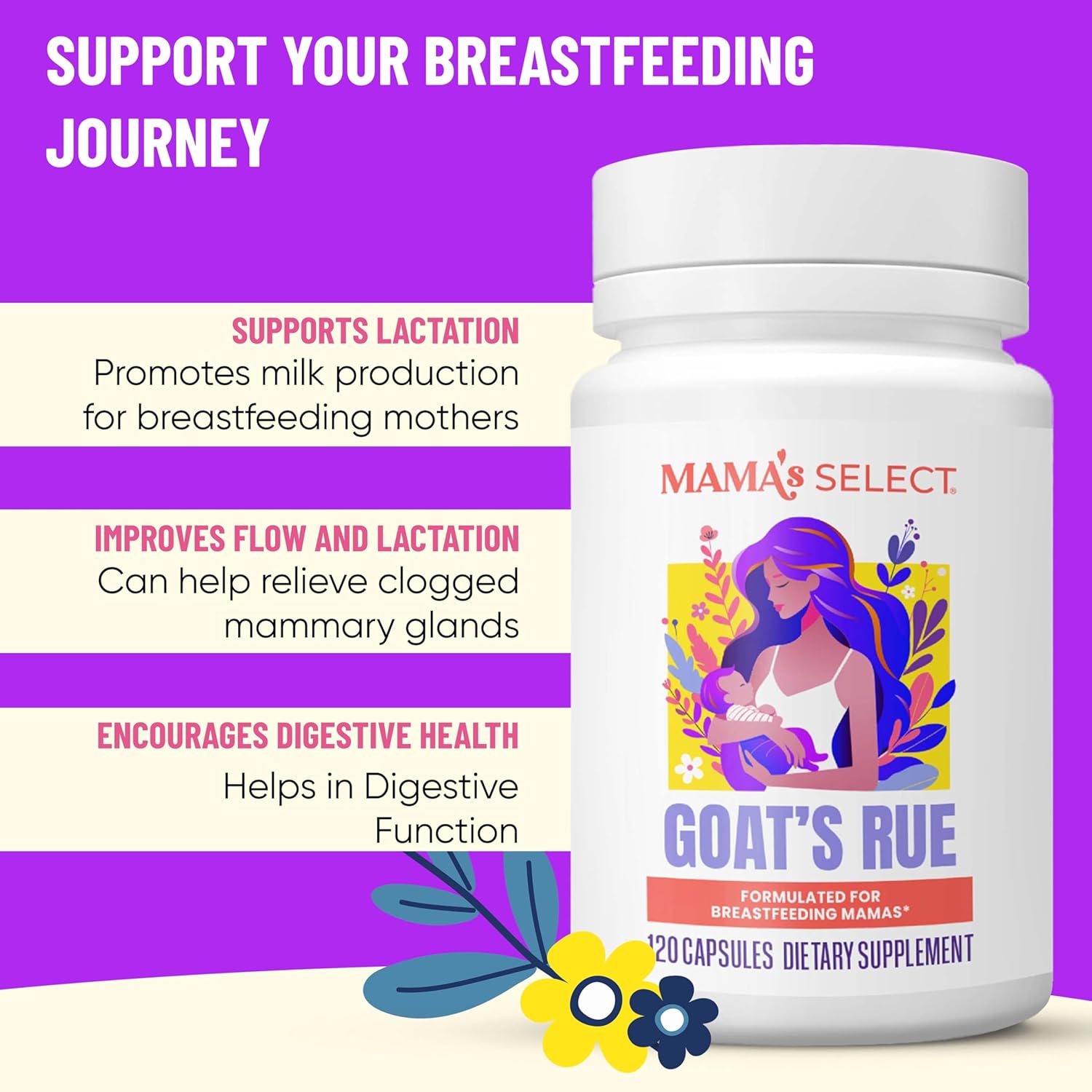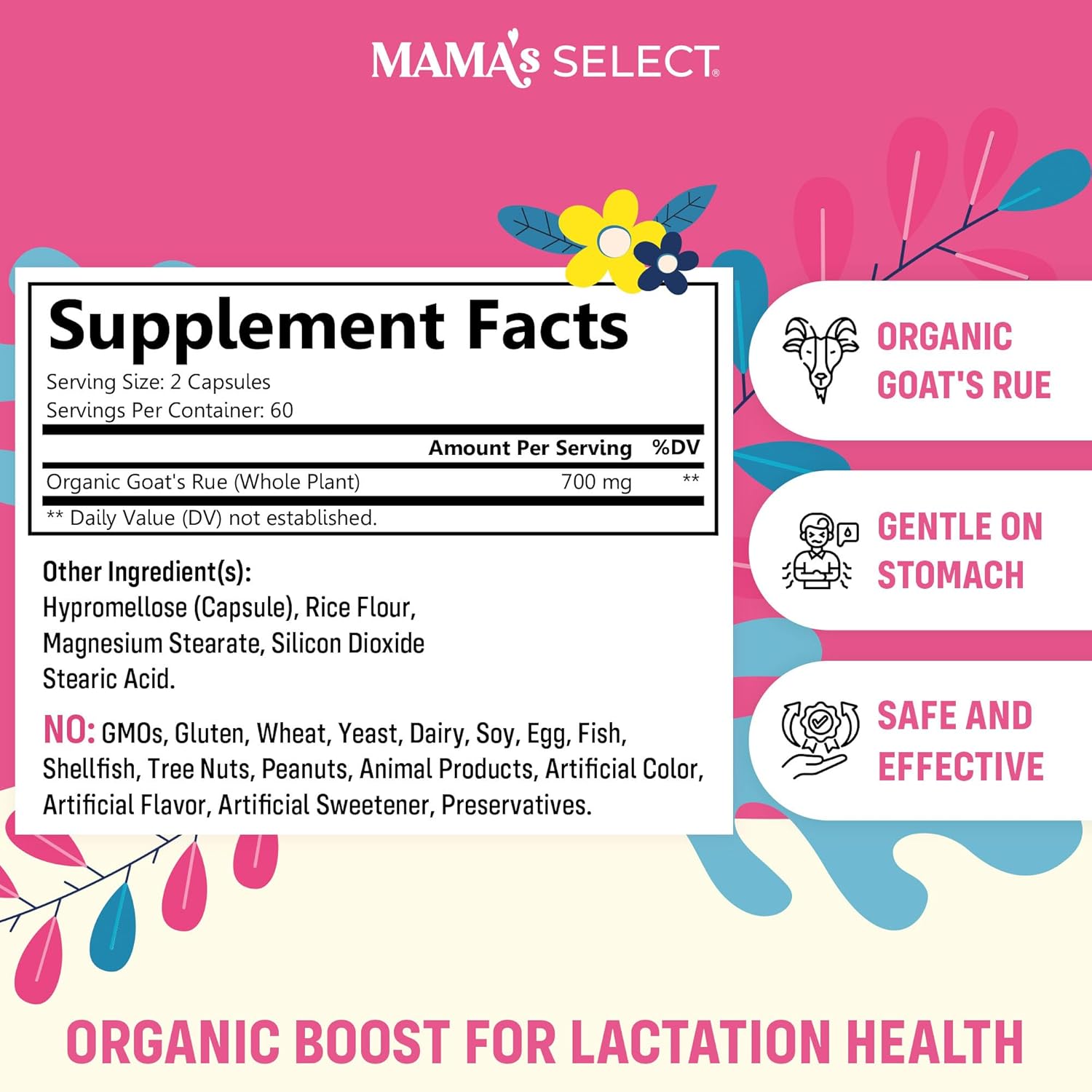 - Mama's Select Organic Goat’s Rue Capsules for Breast Milk Production – Non-GMO, Vegan, Gluten- Free Lactation Support Supplement – Safe & Effective for Nursing Moms – Third-Party Tested