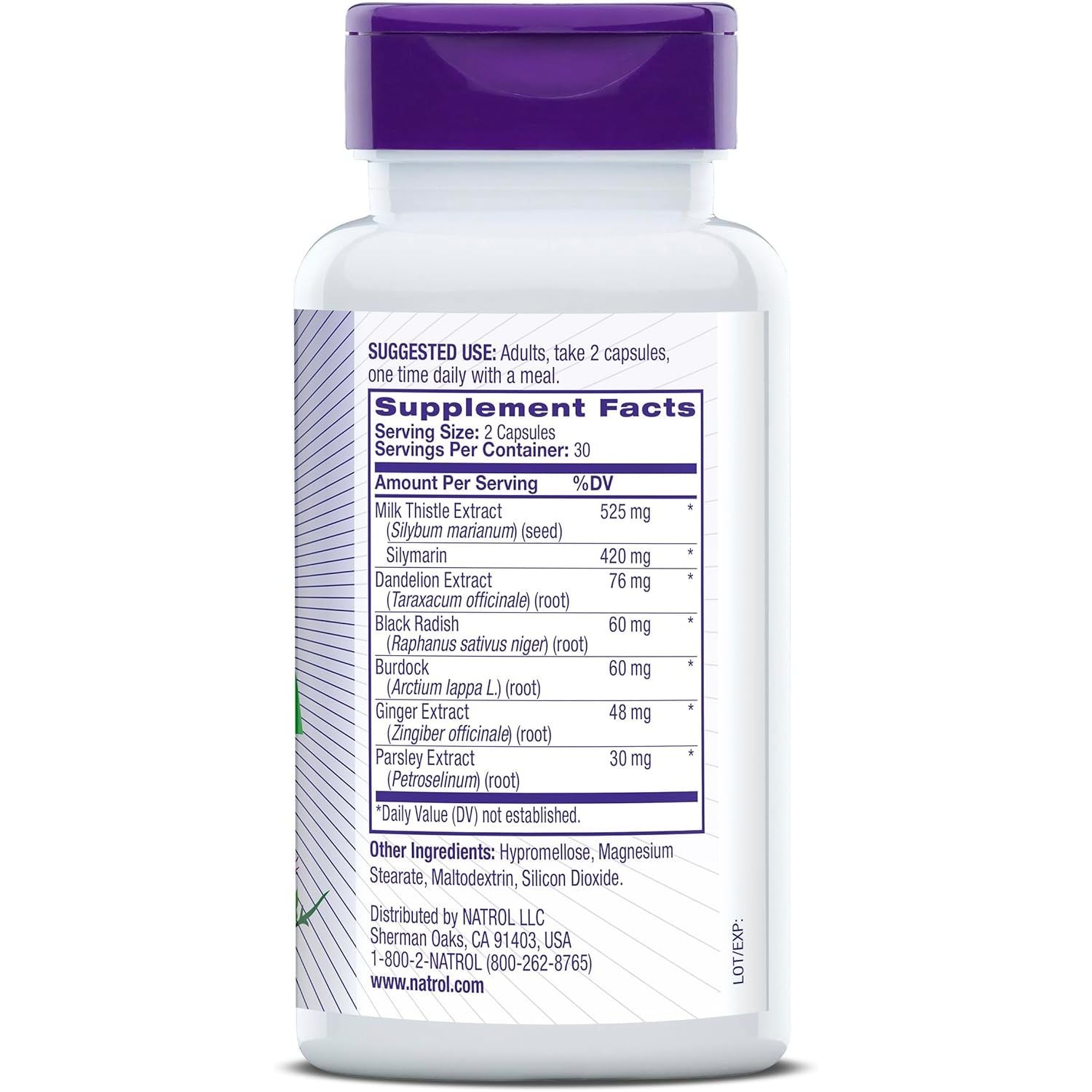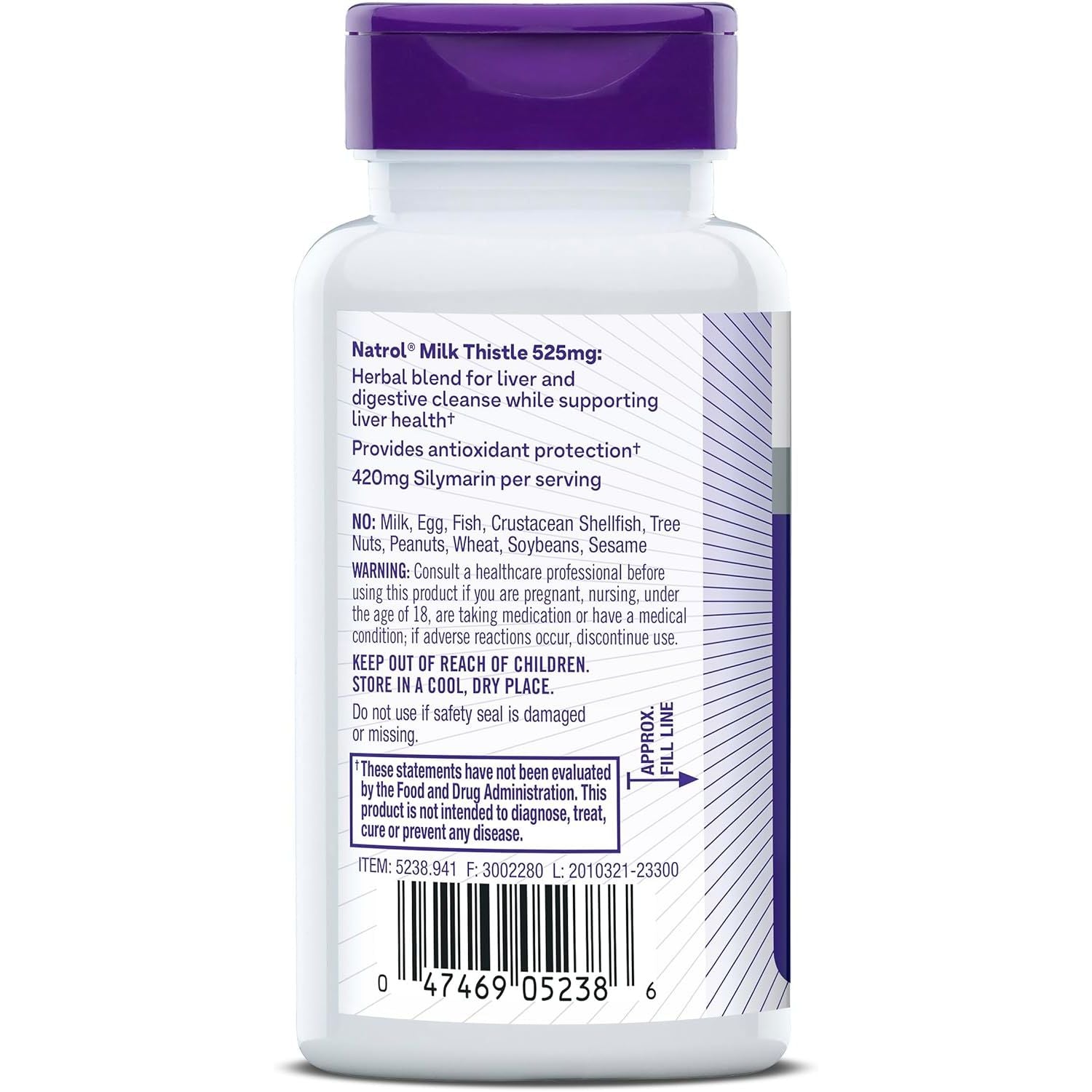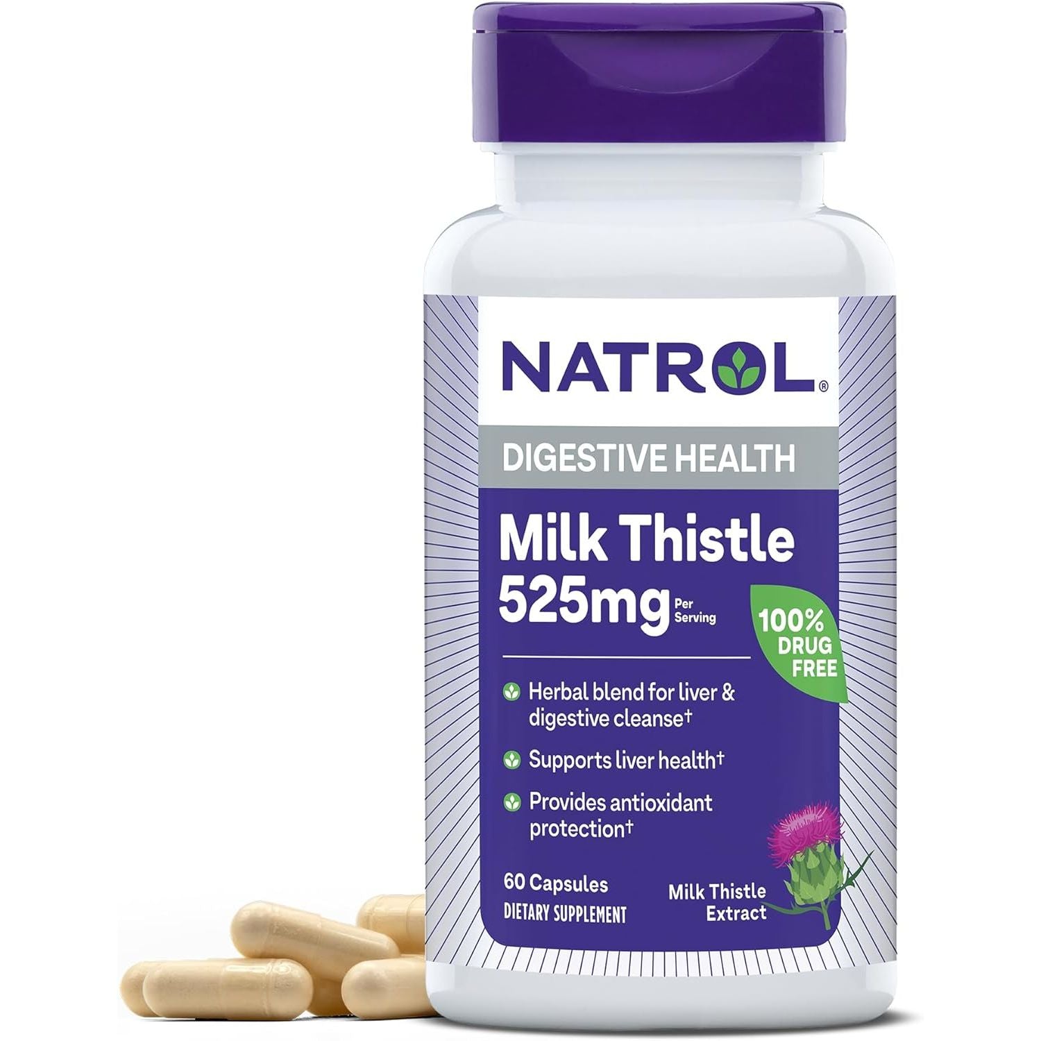 - Milk Thistle Supplement: One 60 count bottle of Natrol Milk Thistle 525 mg capsules for digestive health for a 30-day supply