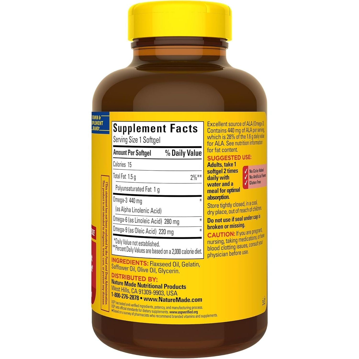 - Nature Made Omega 3 6 9 supplement with the three main fatty acids used by the body