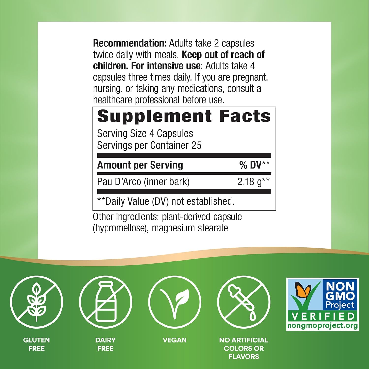 Nature's Way Pau d'Arco is a traditional South American herb.*This statement has not been evaluated by the Food and Drug Administration. This product is not intended to diagnose, treat, cure, or prevent any disease.