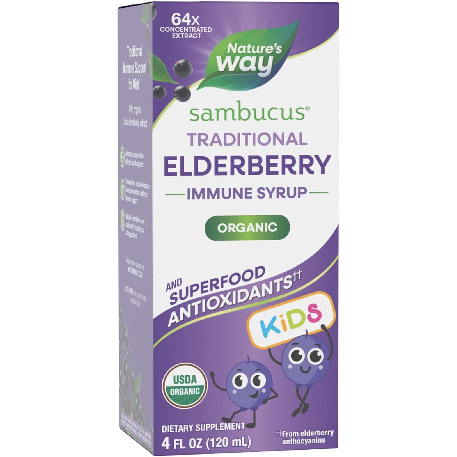 - Nature's Way Sambucus Traditional Immune Syrup for Kids is made with elderberry extract standardized to anthocyanins to provide superfood antioxidant support.*