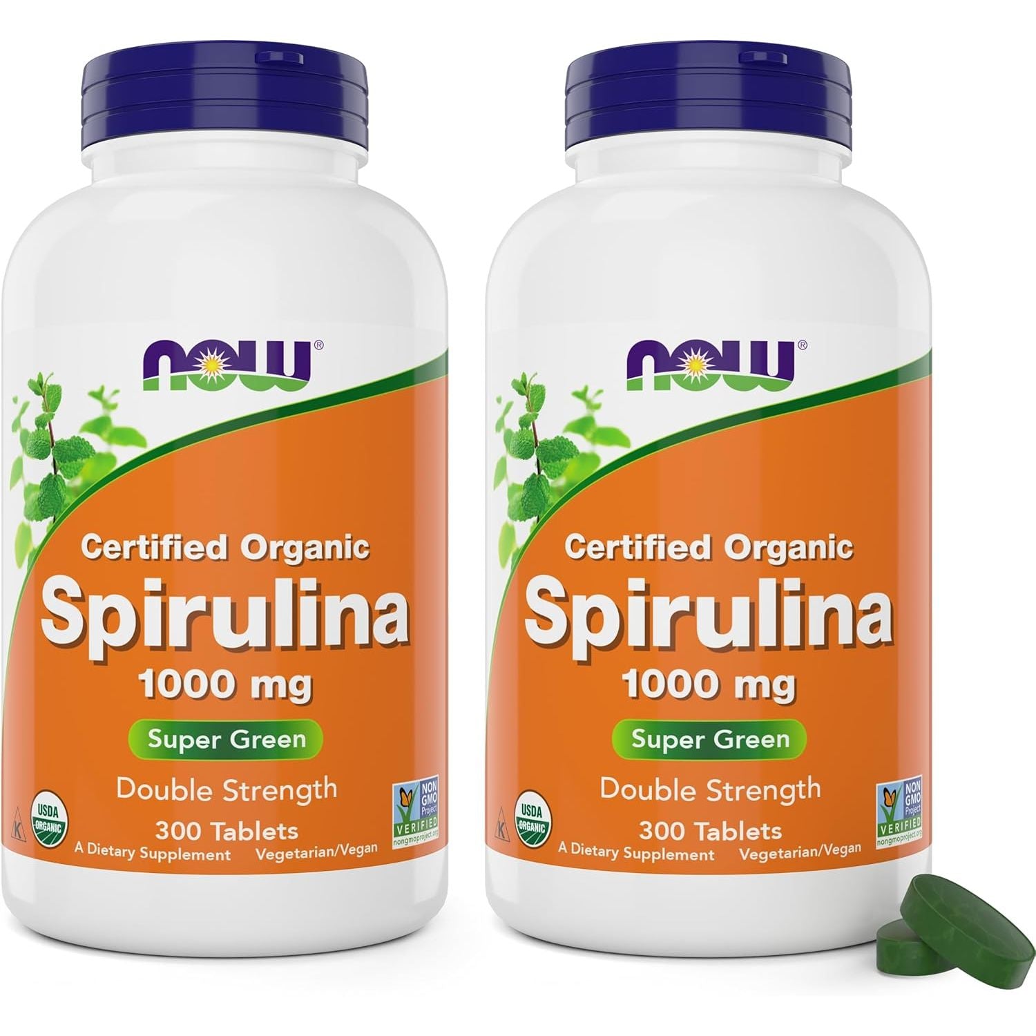 - NOW's Spirulina 1000 mg tablets are certified organic and non-GMO. These tablets are an easy way to get a daily dose of this nutrient rich superfood featuring beta-carotene (Vitamin A) and Vitamin B-12.