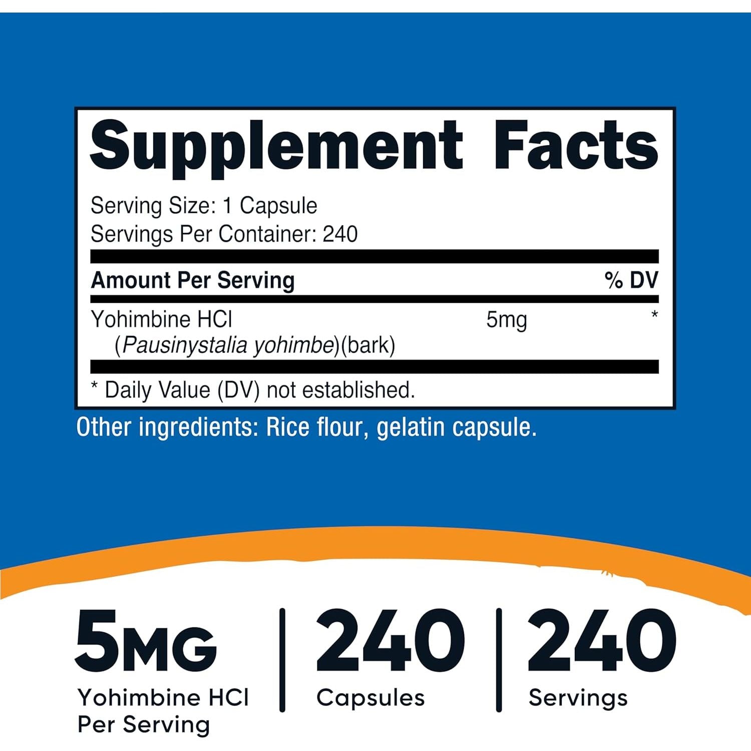 Each capsule contains 5mg of Yohimbine HCl and is backed by the Nutricost Satisfaction guarantee.