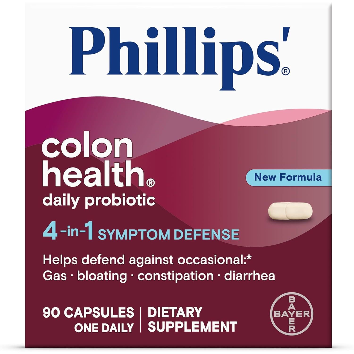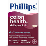 Put colon health first every day with Phillips’ Colon Health Daily Probiotic 4-in-1 Symptom Defense. One capsule helps defend against occasional gas, bloating, constipation, and diarrhea*. Phillips’ Colon Health Daily Probiotics are formulated with two cultures of good bacteria similar to those naturally occurring in the colon: Lactobacillus rhamnosus (LGG ® ) and Bifidobacterium (BB-12 ® ). Each capsule is Non-GMO; Gluten Free; Dairy Free and Soy Free. A healthy, balanced colon is essential to a healthy digestive system. Diet, travel, and stress can upset the balance of good bacteria in your gut. Phillips’ Daily Probiotics helps replenish good bacteria and supports digestive and immune health*. Phillips’ Colon Health promises 3 Billion CFUs at time of expiry. Adults take one capsule daily. No refrigeration required. For over 150 years, Phillips’ has been a trusted name in digestive expertise *This statement has not been evaluated by the Food and Drug Administration. This product is not intended to diagnose, treat, cure, or prevent any disease.