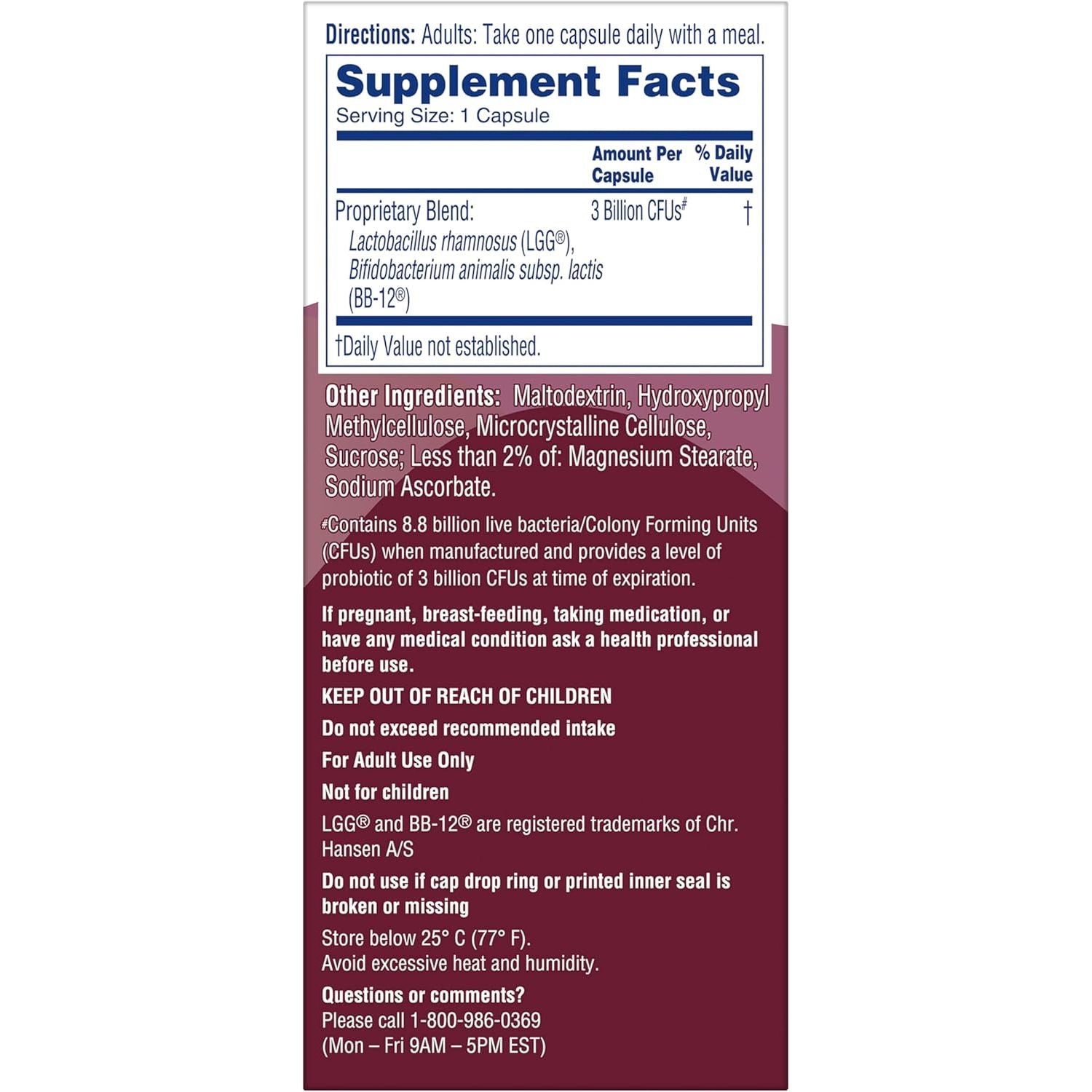 - Contains Specially Selected Probiotics: Lactobacillus rhamnosus (LGG) and Bifidobacterium (BB-12). Non-GMO; Gluten Free; Dairy Free and Soy Free. No refrigeration required
