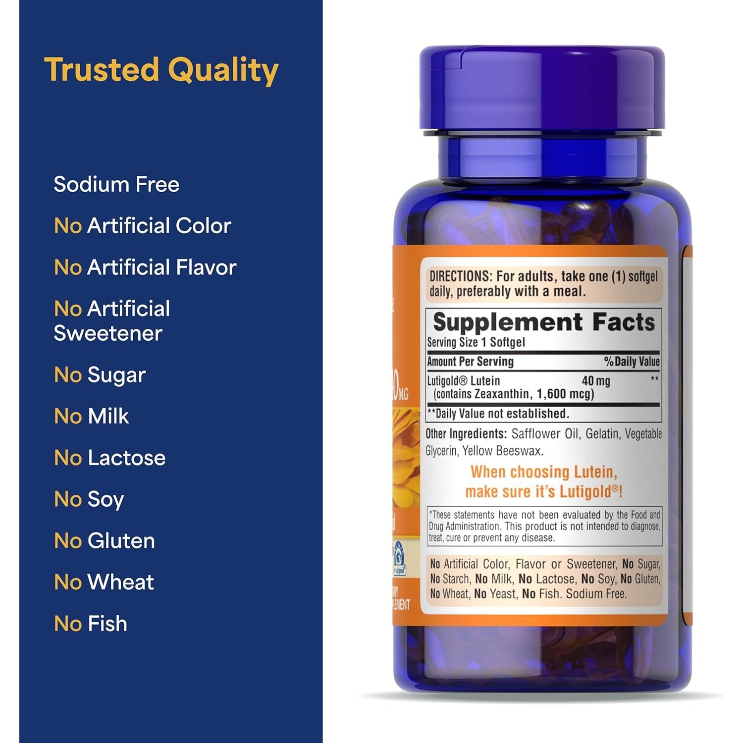 - Puritan's Lutigold Lutein 40mg Zeaxanthin 1600 mcg 60 Softgels Free USA Shipping