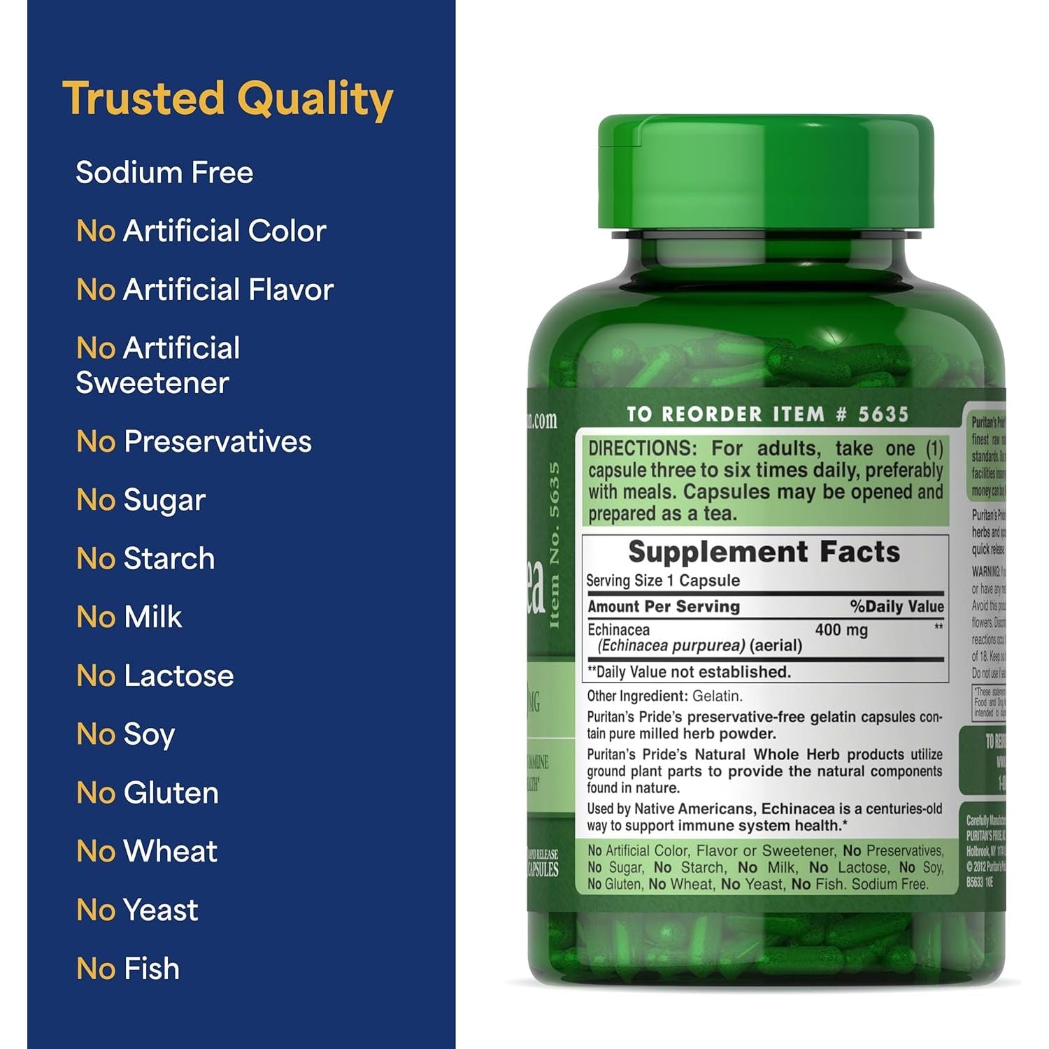 - NATURAL WHOLE HERB: Crafted with natural Echinacea, this supplement is free from artificial colors, flavors, and sweeteners*