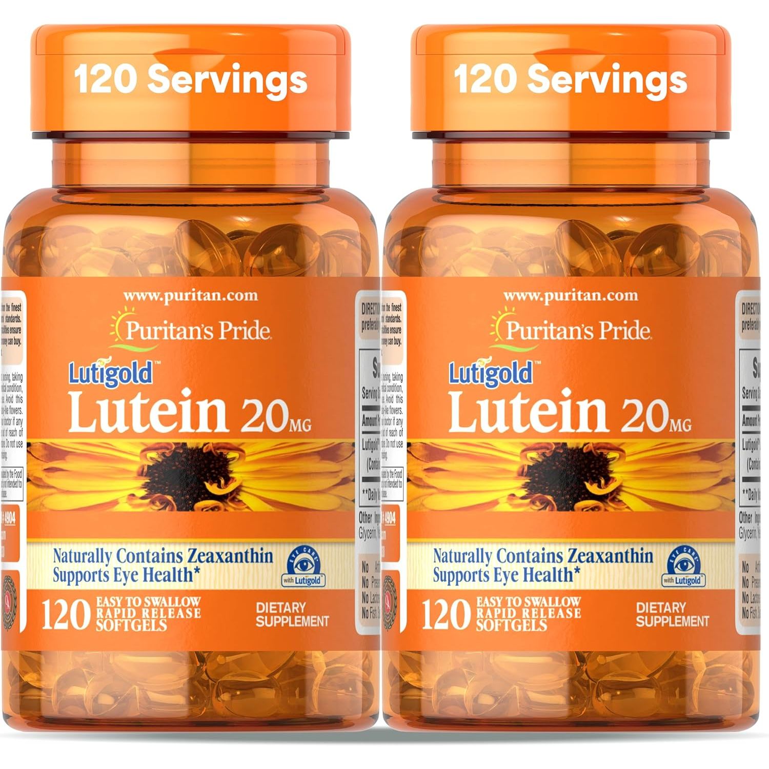 Puritan’s Pride Lutigold Lutein provides essential support for your vision with 20 mg of lutein per softgel.* This powerful carotenoid is primarily found in the macula, the central area of the retina, where it plays a vital role in helping to filter out harmful blue light emitted by computers and smartphones.* Studies have shown that lutein supports contrast sensitivity, a key factor in low-light conditions, such as night driving.* With its antioxidant properties, Lutein not only supports eye health but also contributes to healthy skin.* Each bottle contains 120 rapid-release softgels, making it convenient to integrate into your daily routine.* *These statements have not been evaluated by the Food and Drug Administration. This product is not intended to diagnose, treat, cure or prevent any disease.