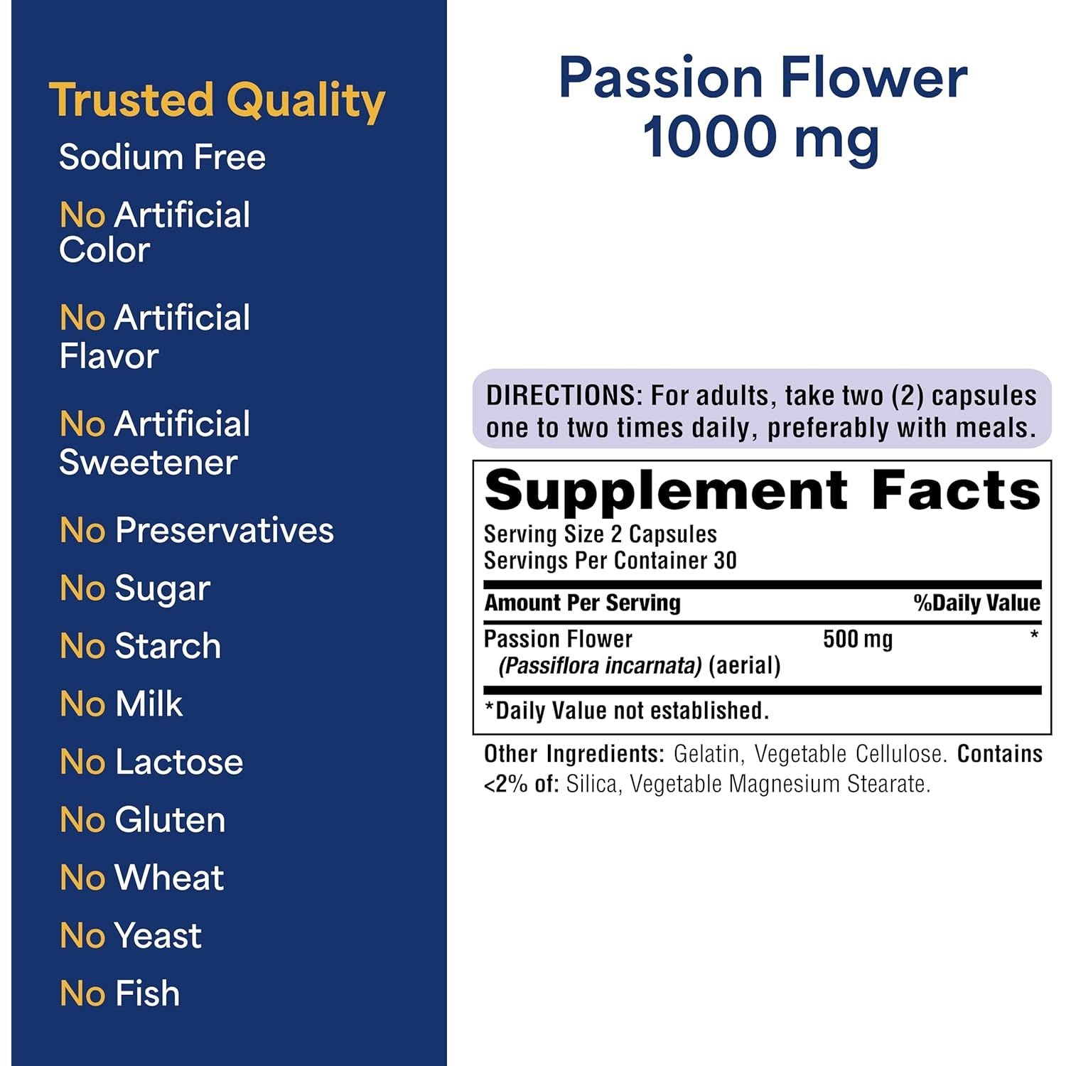 - POTENT DOSAGE: Each capsule contains 250 mg of concentrated Passion Flower extract, equivalent to 1,000 mg of the raw herb