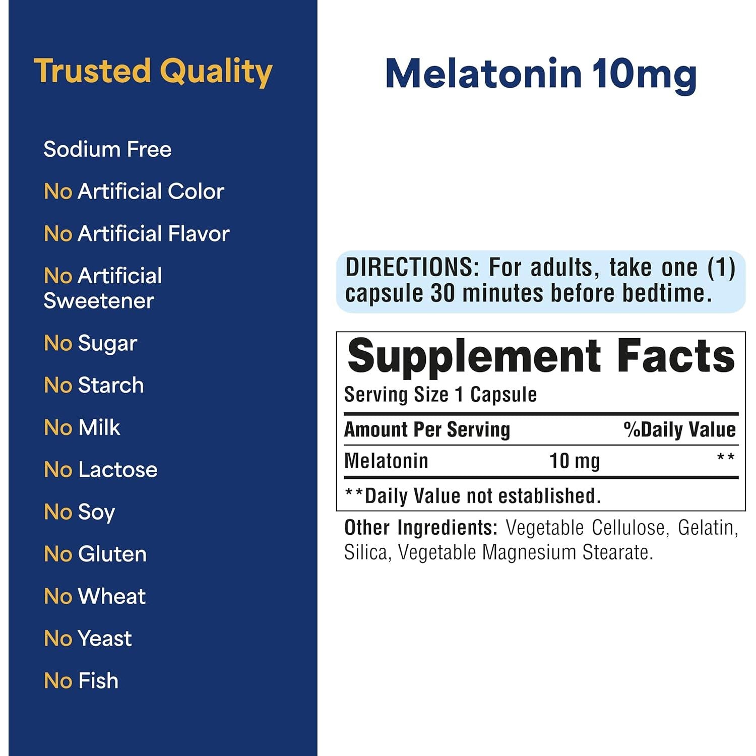 - SUPPORTS RESTFUL SLEEP: Puritan’s Pride Melatonin 10mg rapid release 240 capsules are designed to help you fall asleep quickly and stay asleep longer. With 10 mg of Melatonin per capsule, this supplement helps to improve your overall sleep quality*
