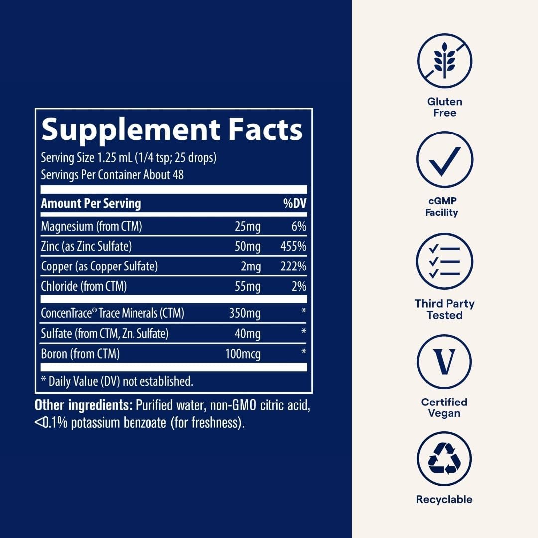 - Concentrated Zinc Drops: This concentrated liquid provides zinc in ionic form, which is the form most recognizable by the body; the ionic Trace Minerals formula supports body-mineral balance