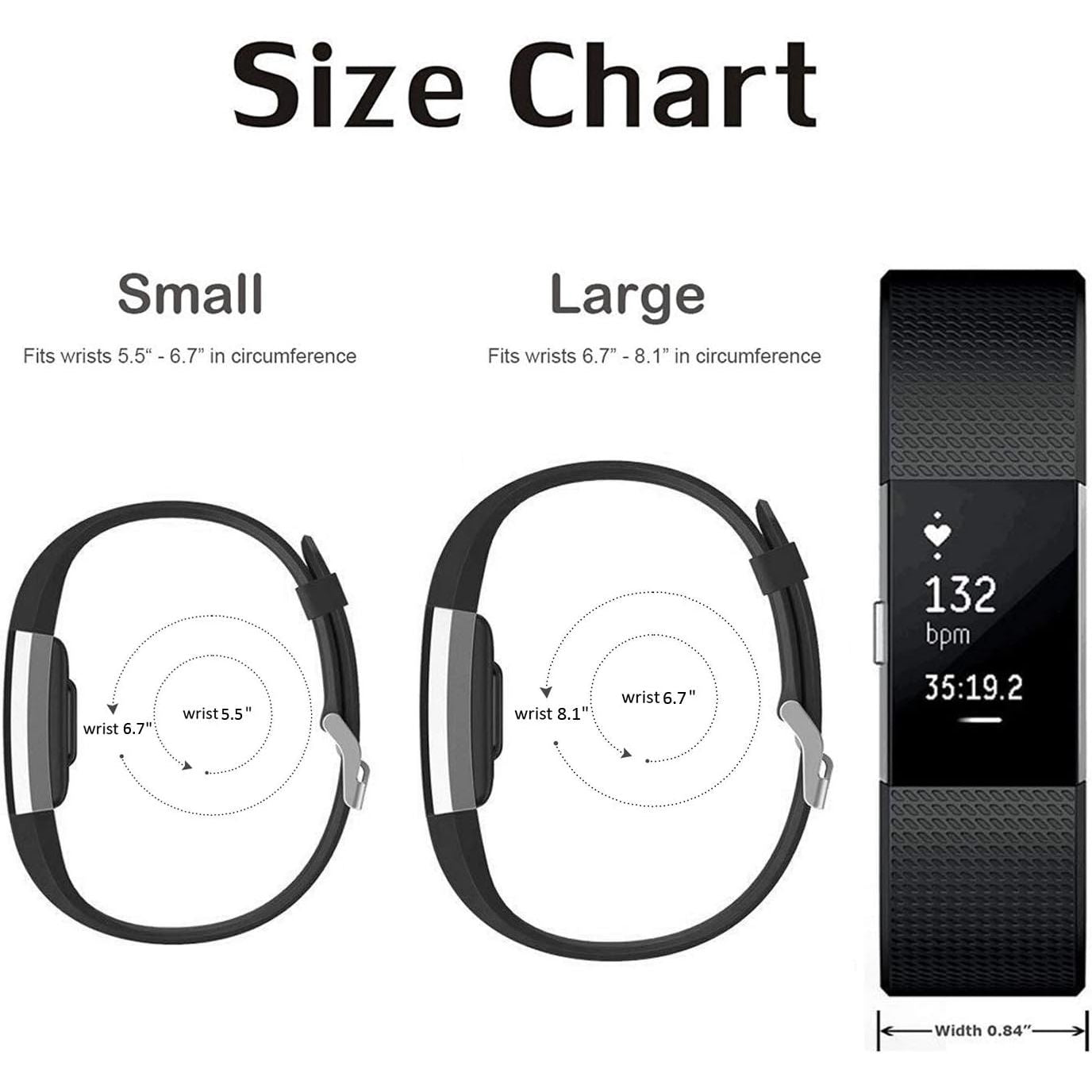 - High Quality Material: replacement accessory bands for Fitbit Charge 2 is made of flexible and durable elastomer material with surgical-grade stainless steel buckle, Size: Small ( 5.5"-6.7" ), Large ( 6.7"-8.1" )