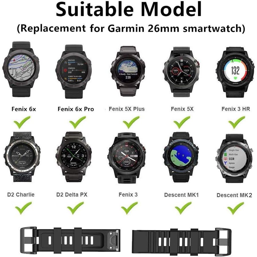 - 【Compatible with】The Safe and Soft Fastener rings loop is the 26mm inner diameter, Sutiable For Garmin Fenix 7x solar/7X Sapphire Solar/6x/6x pro/6x Sapphire /Fenix 5X/ Fenix 5X Plus /Fenix 3 / Fenix 3 HR / Fenix 3 Sapphire / Descent Mk1 / Quatix 3 / Tactix Bravo Band.NOT FOR Fenix 5 and fenix 5 plus.