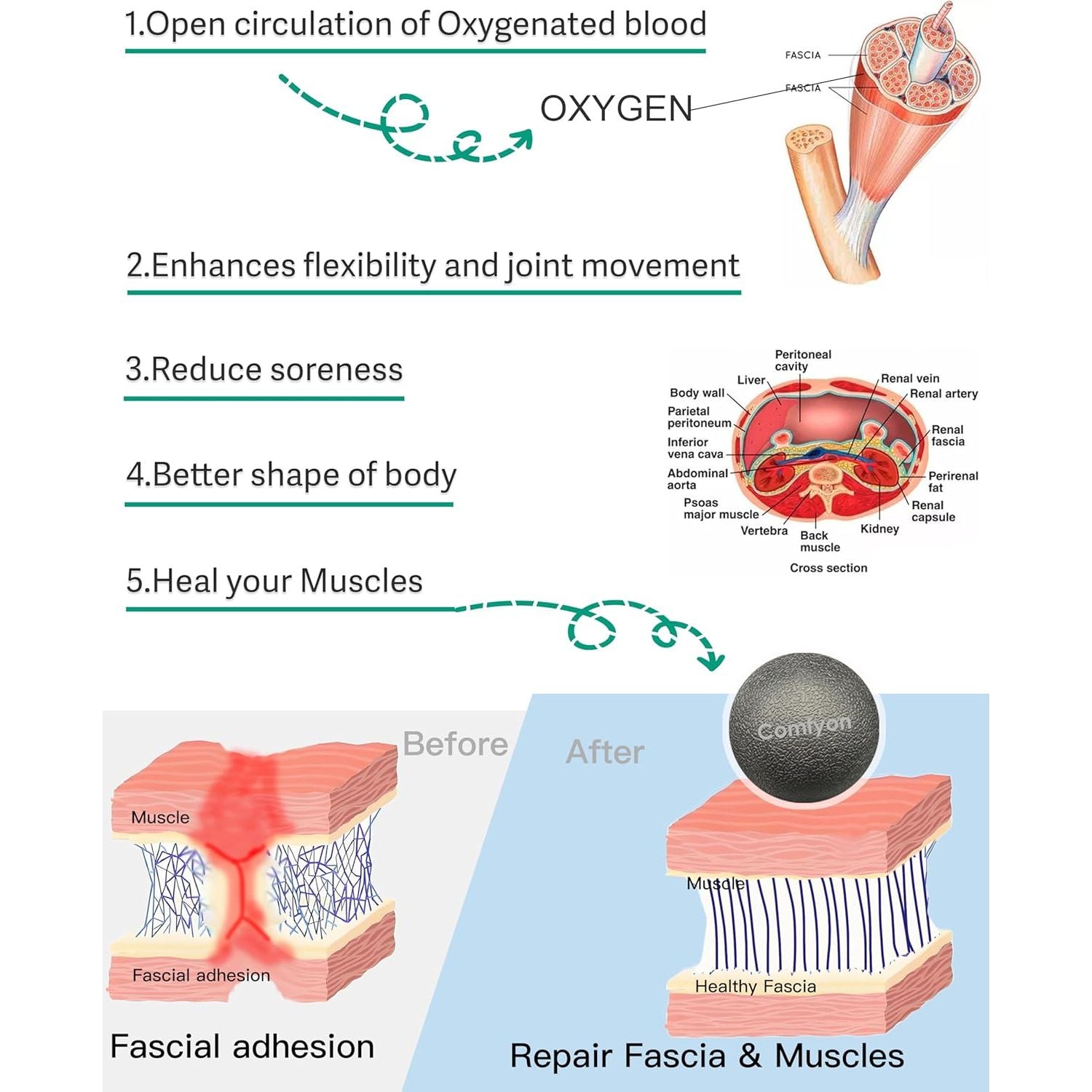 The soles of the feet contain numerous acupuncture points, muscles, and nerves. Standing, walking, running, and high-heeled shoes for a long time are all harmful to it. The muscles on the soles of the feet continue to stiffen, blocking blood flow and compressing nerves. Comfyon hard massage ball, can solve these problems very well