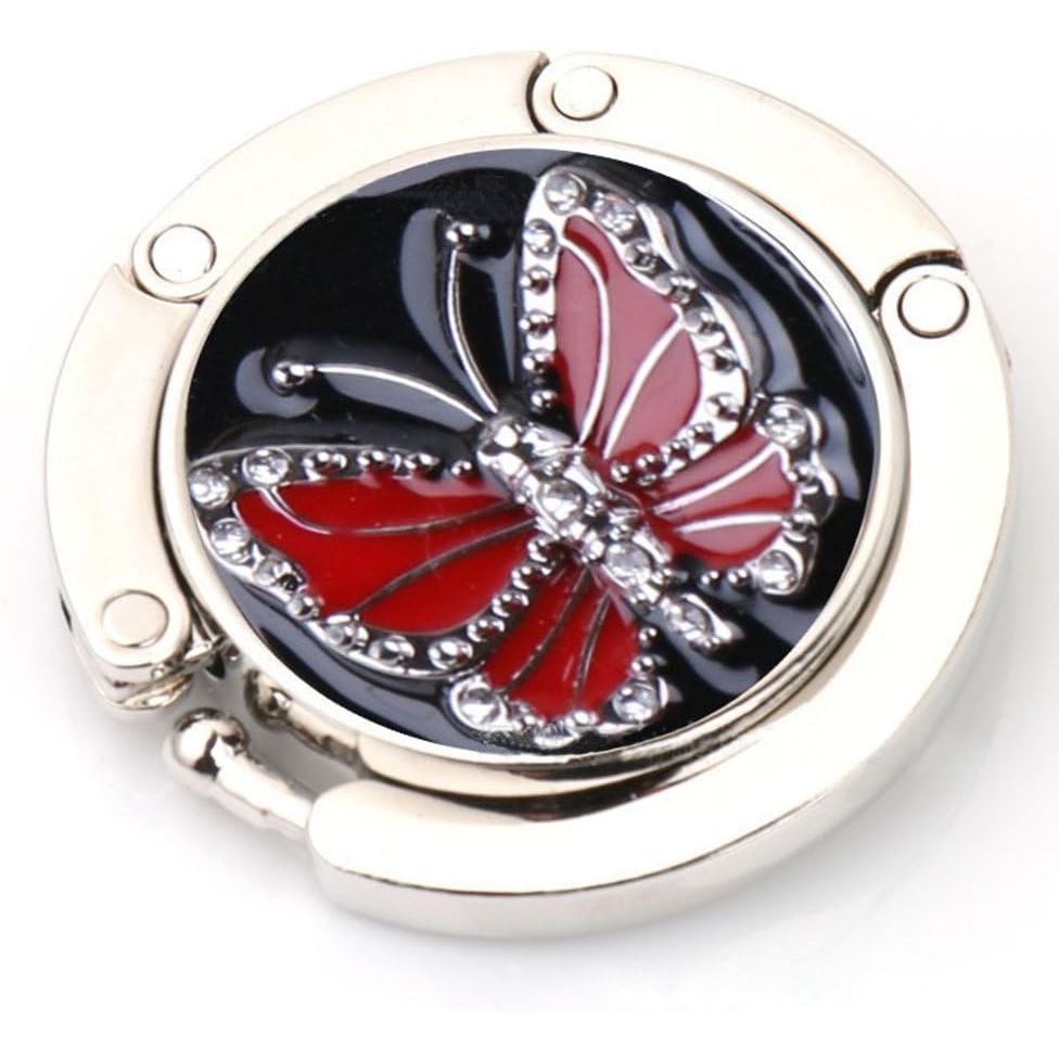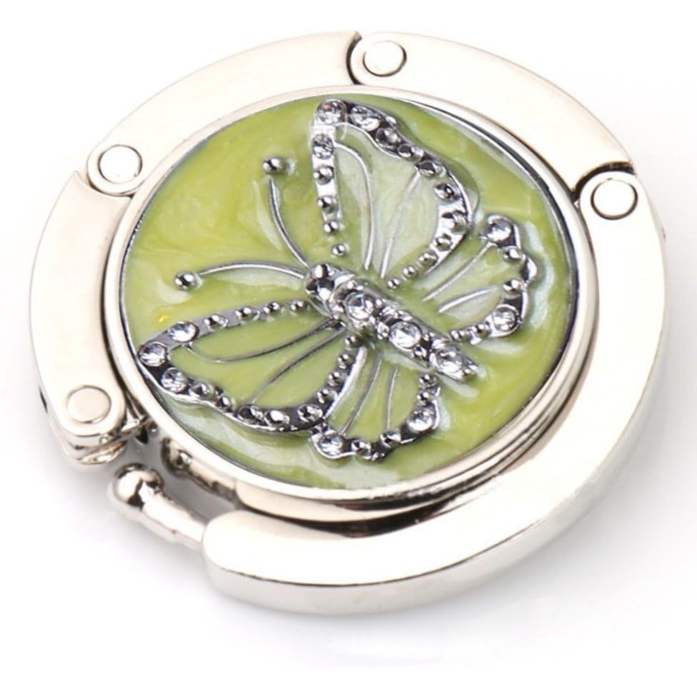 Handbag Hanger,FOME Set of 4 Foldable Purse Hook Purse Table Hook Holder Butterfly Shape Bag Hanger Hook 1.77x3.54in Mixed Color Feature Are you still worried that there is no place to put your beloved bag when you have dinner at restaurant.It maybe be stolen if put the bag on the chair;It is inelegant if put it in the arms;It is dirty if put it on the ground. The appearance of the purse hook brings more conveniences to many modern ladies.Handbag hanger is small,exquisite and easy to carry;it becomes more and more popular in many ladies at home and abroad. When we have dinner at restaurant or chat with friends at coffee house,we can use the Purse table holder to hang your bag or purse on the edge of the table.It can keep your bag or purse safe at restaurant,office or anywhere.It is very convenient! Specification: Material:Zinc alloy Shape:Butterfly Color: 4 colors:Yellow,Black red,Purple,Black white Diameter:Approx 4.5cm/1.77in Length:Approx 9cm/3.54in (when the hook unfolds) Weight:Approx 40g/0.088lbs Package Includes 1 x Yellow Handbag Hanger 1 x Black red Handbag Hanger 1 x Purple Handbag Hanger 1 x Black and white Handbag Hanger Note: Please allow 1-2mm error due to manual measurement. Due to the difference between different monitors,the picture may not reflect the actual color of the item.